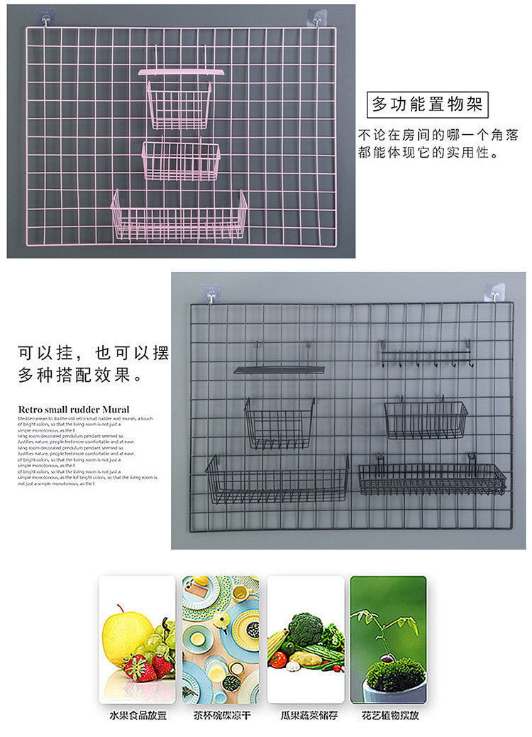 Ins 그리드 교수형 바구니 트레이 철망 보관함 슈퍼마켓 홈 보관함 선반 메쉬 보관함