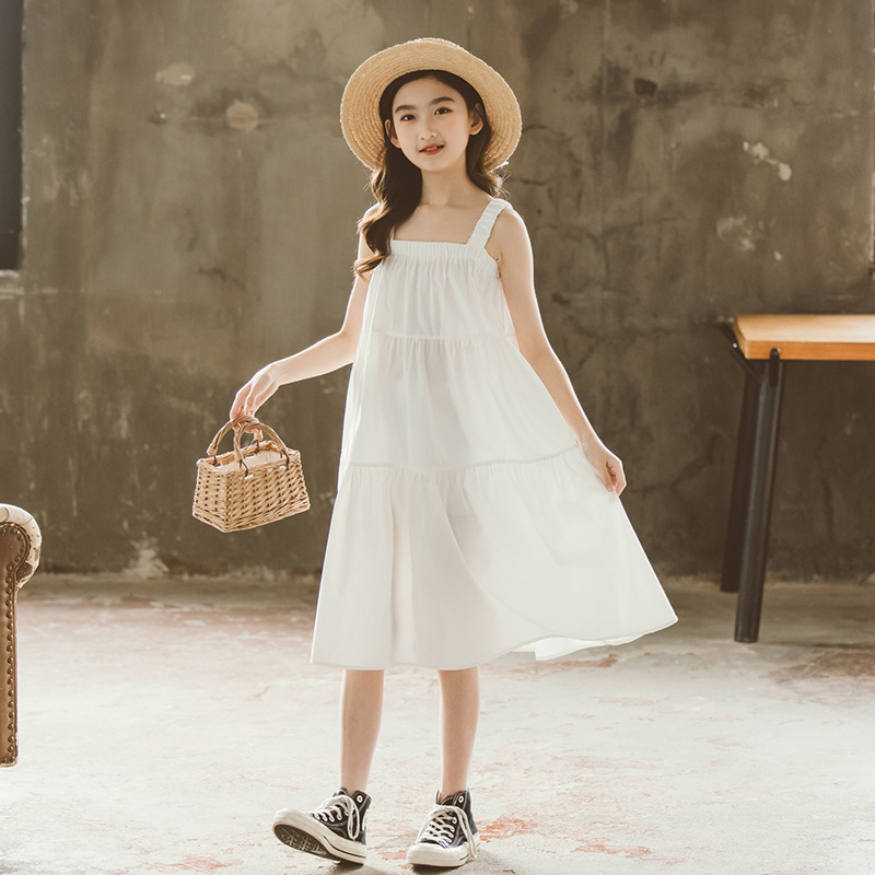 Dropshipping 2025 여름 한국 보드 중대형 어린이 소녀 휴가 해변 드레스 서스펜더 스커트 케이크 화이트 공주스토어 가기