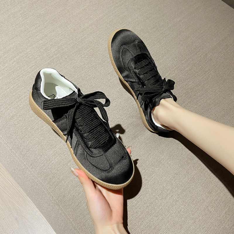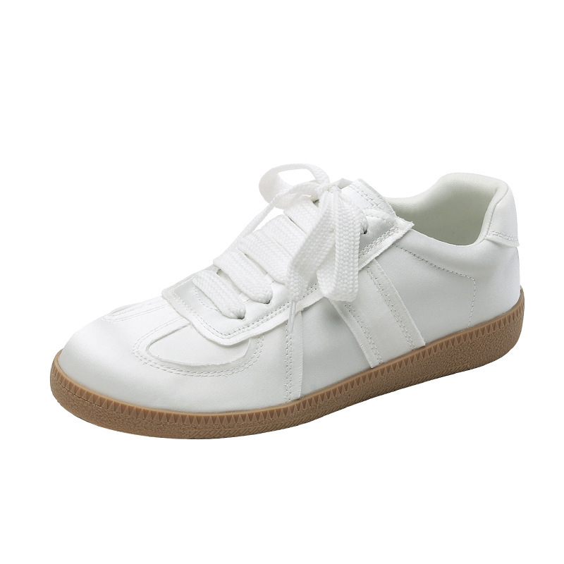 스포츠 새틴 레트로 컬리지 스타일 라운드 토 레이스업 캐주얼 스니커즈 편안한 플랫 화이트 슈즈 여성 플랫힐스토어 가기