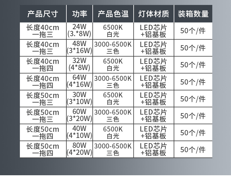 • 3 색 3*20W (1 드래그 3) 50cm