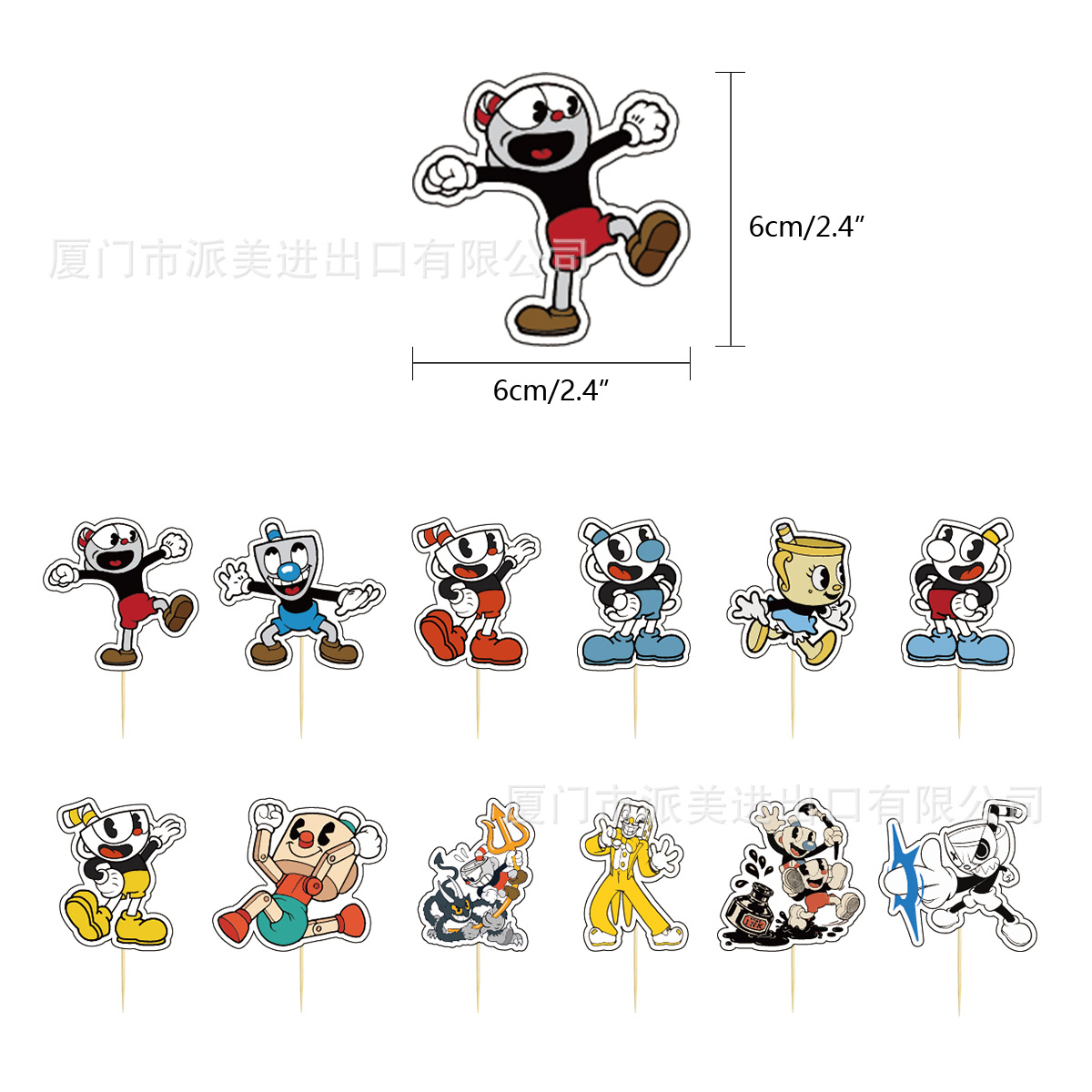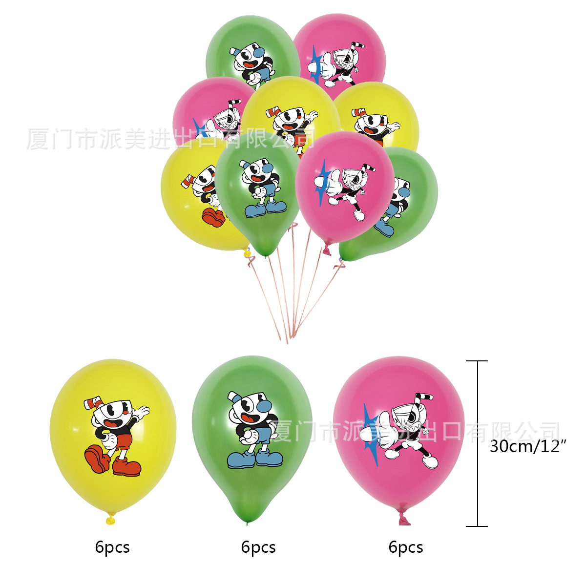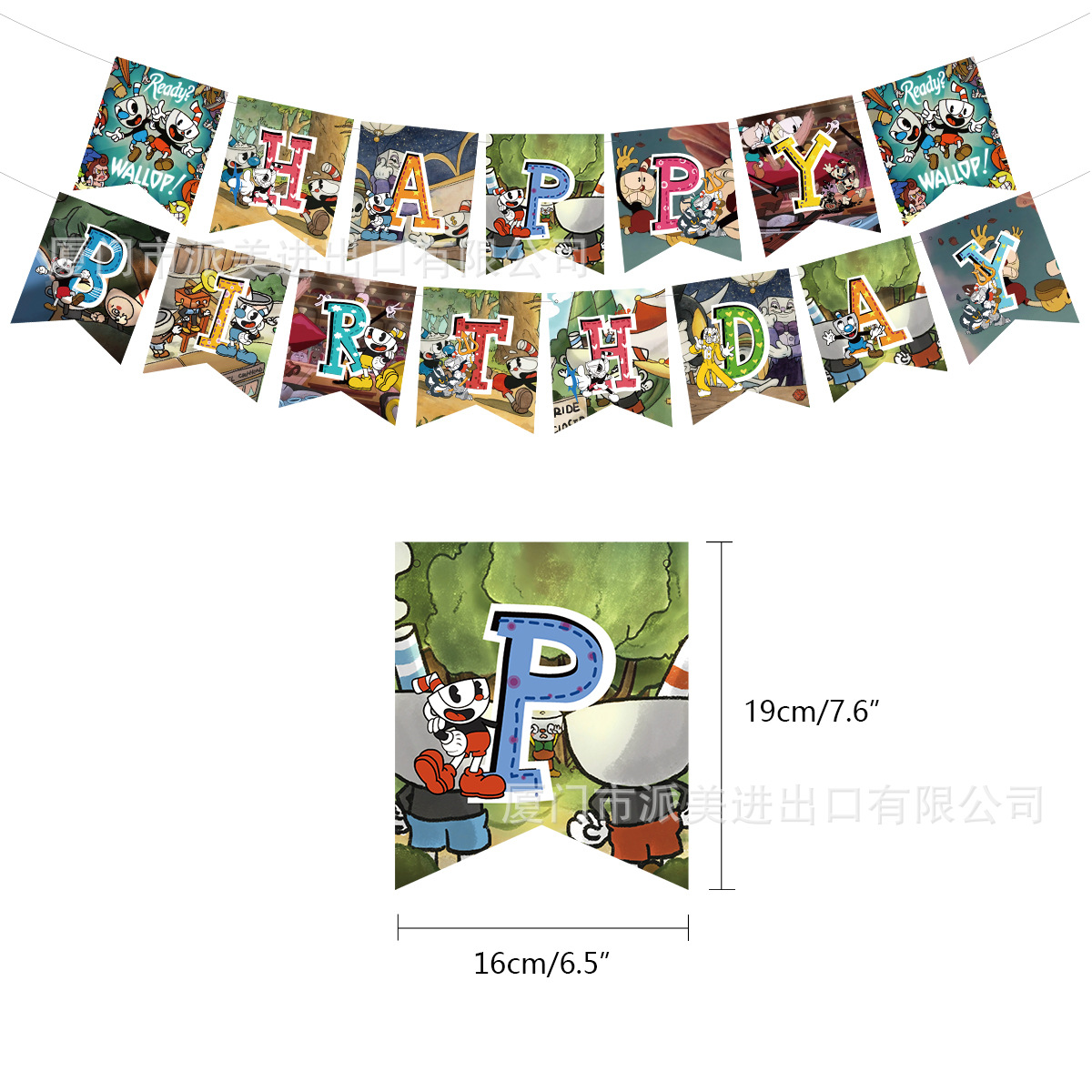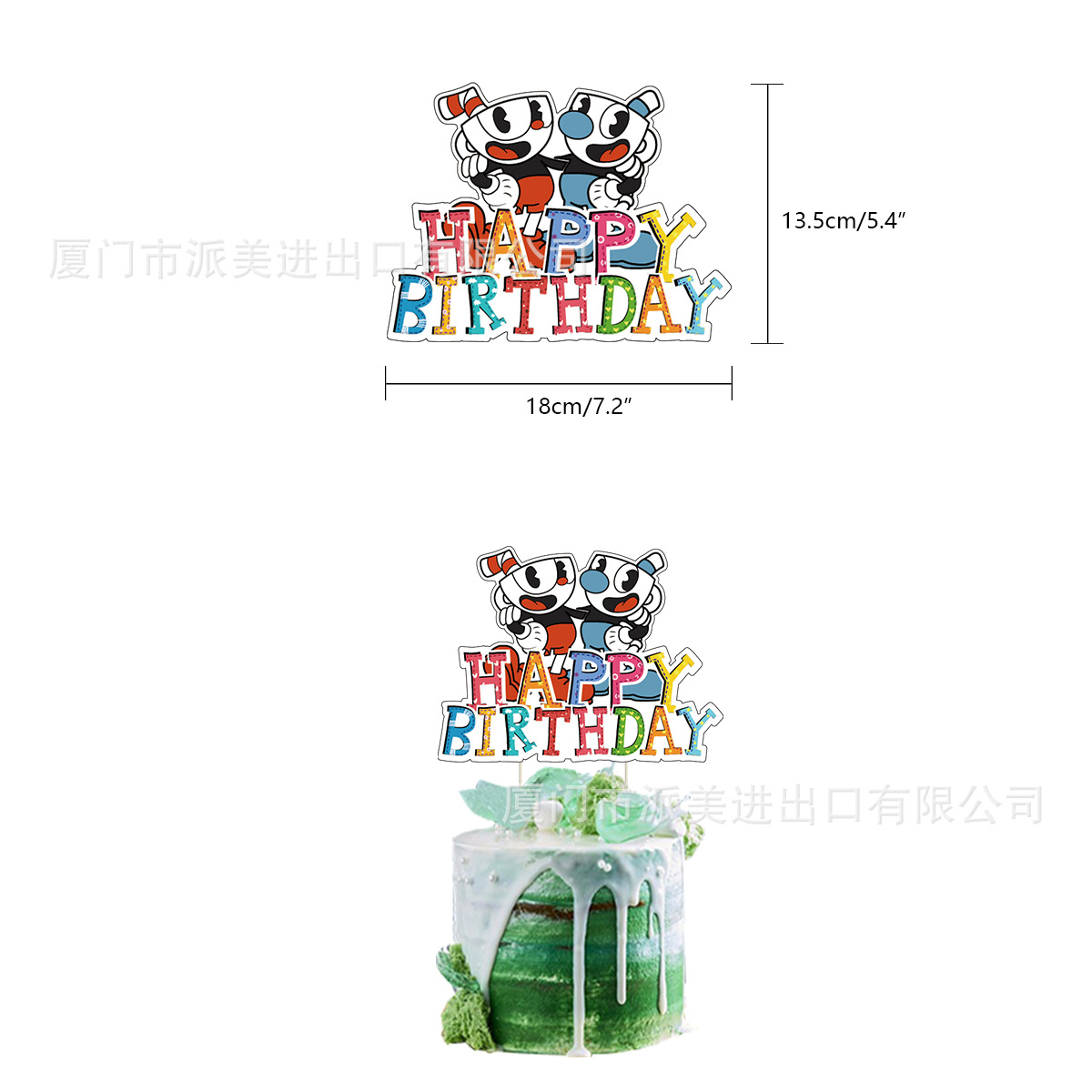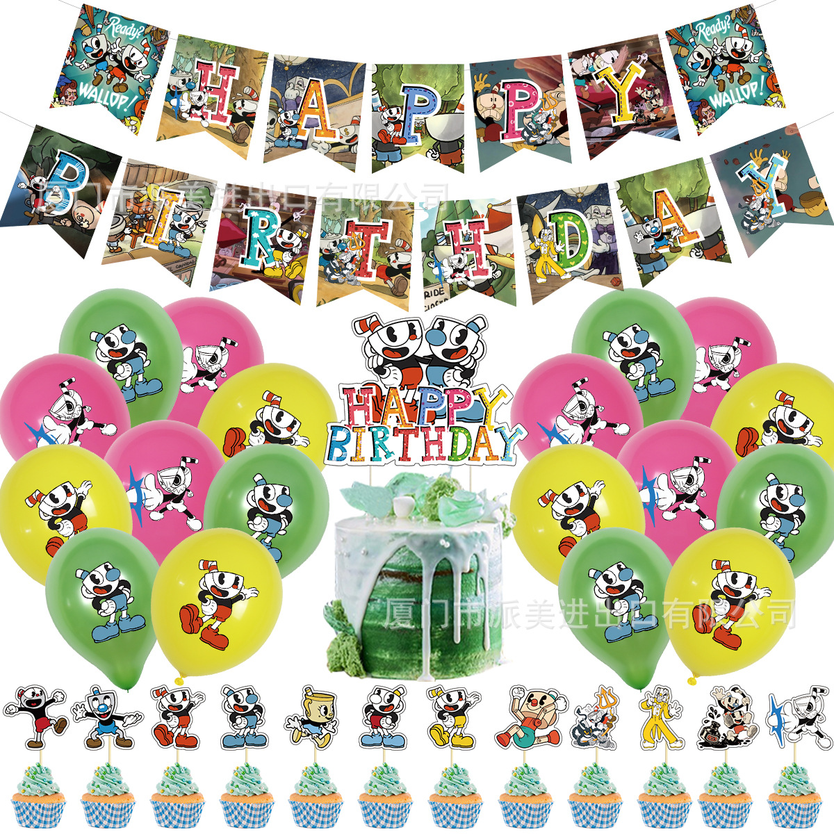 새로운 찻잔 머리 테마 어린이 생일 파티 장식 용품 생일 깃발 케이크 깃발 라텍스 풍선 세트스토어 가기