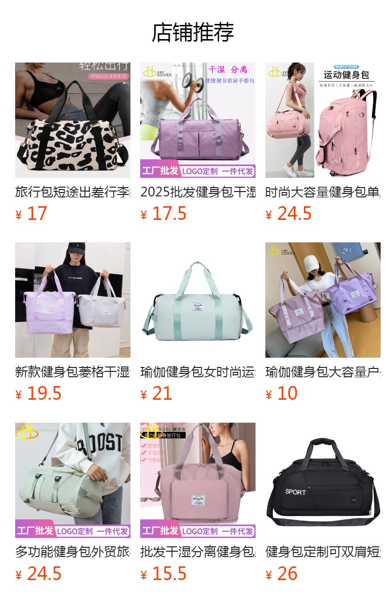 2026 도매 피트니스 가방 건식 및 습식 분리 대용량 요가 가방 크로스보더 패션 트렌드 경량 스포츠 여행 가방스토어 가기