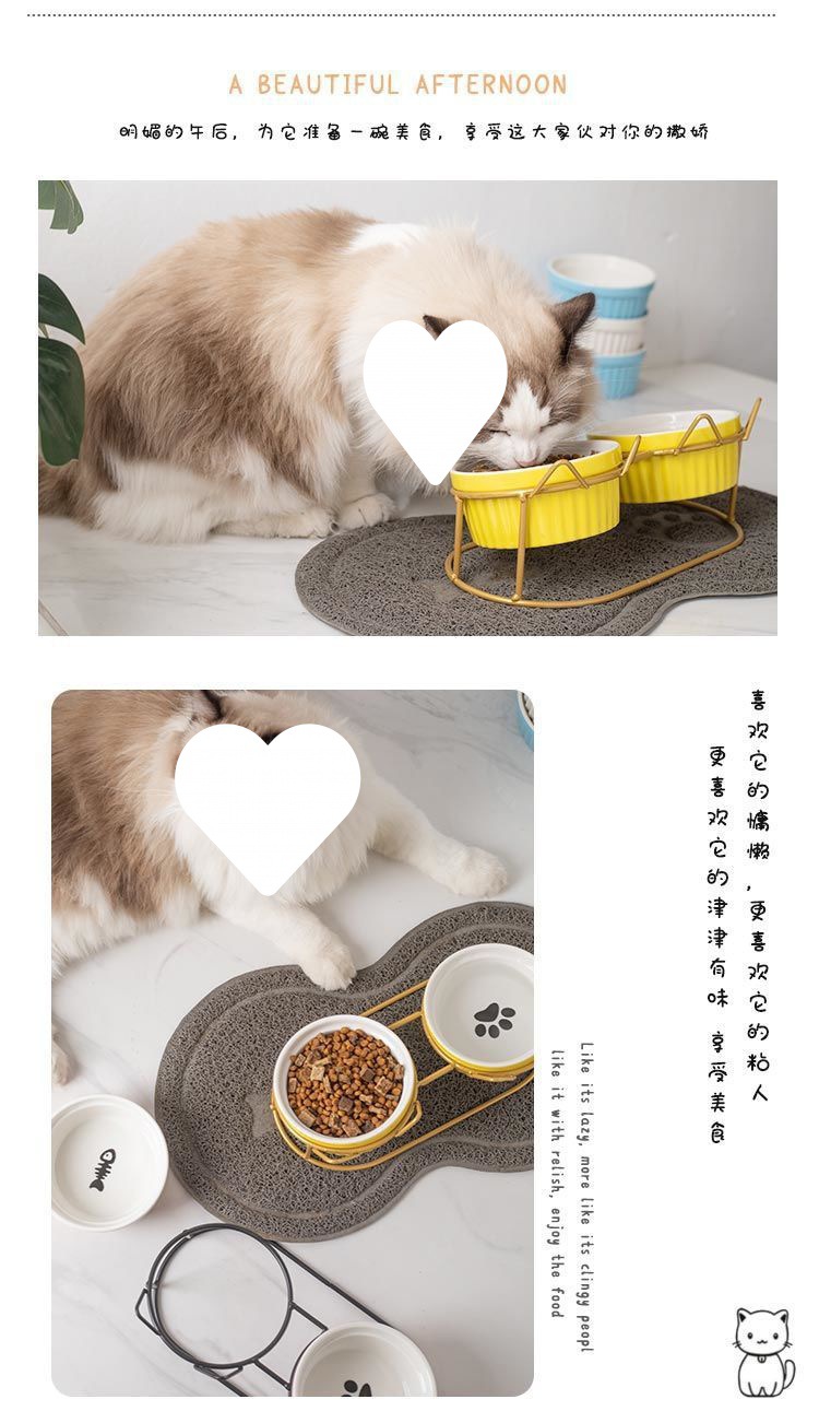 세라믹 고양이 그릇 높은 발 목 보호 이중 그릇 고정 프레임 전복 방지 애완 동물 고양이와 개 음식 분지 물그릇 기울기 보호 경추스토어 가기