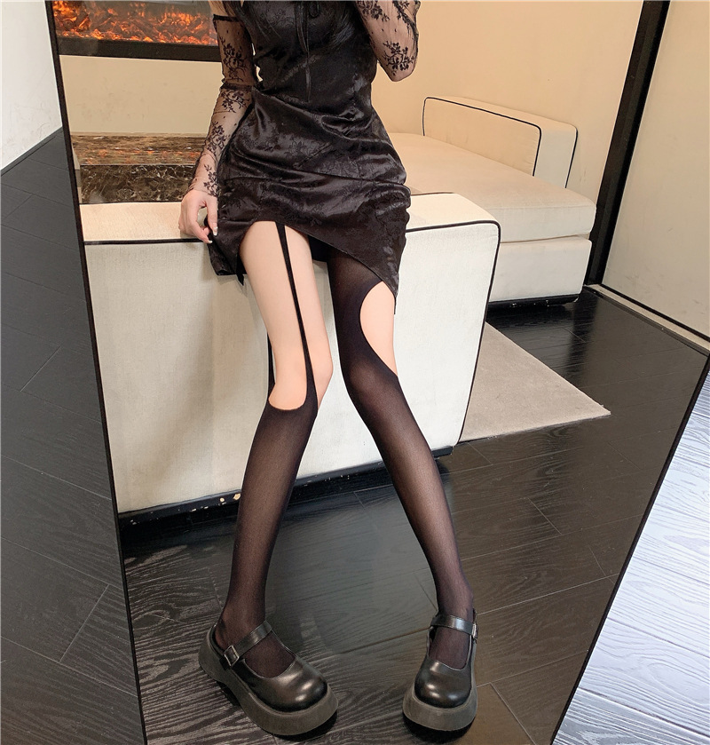 새로운 스타일 향신료 소녀 성격 구멍 블랙 실크 비대칭 홀터 양말 중공 펑크 원피스 양말 순수 슬림 팬티 스타킹