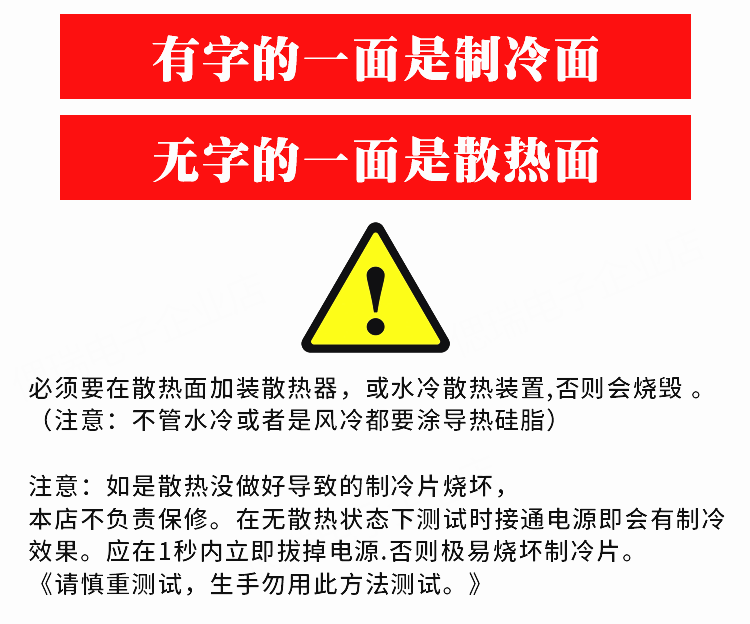 3.器件厚度为5.7mm,普通型器件厚度通常为3-4mm之间,器件的PN结单元尺寸由原有的1.4*1.4*1.5mm变为1.4*1.4*2mm,这样有助于增加冷热端之间的距离,减少了热端放热对冷面致冷的影响