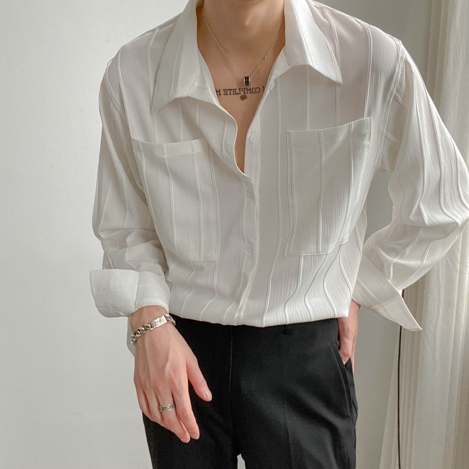 남자의 긴팔 비 다림질 펜던트 셔츠 2022 봄 가볍게 성숙한 한국 스타일 단색 셔츠 유행 남자의 잘 생긴 탑스토어 가기