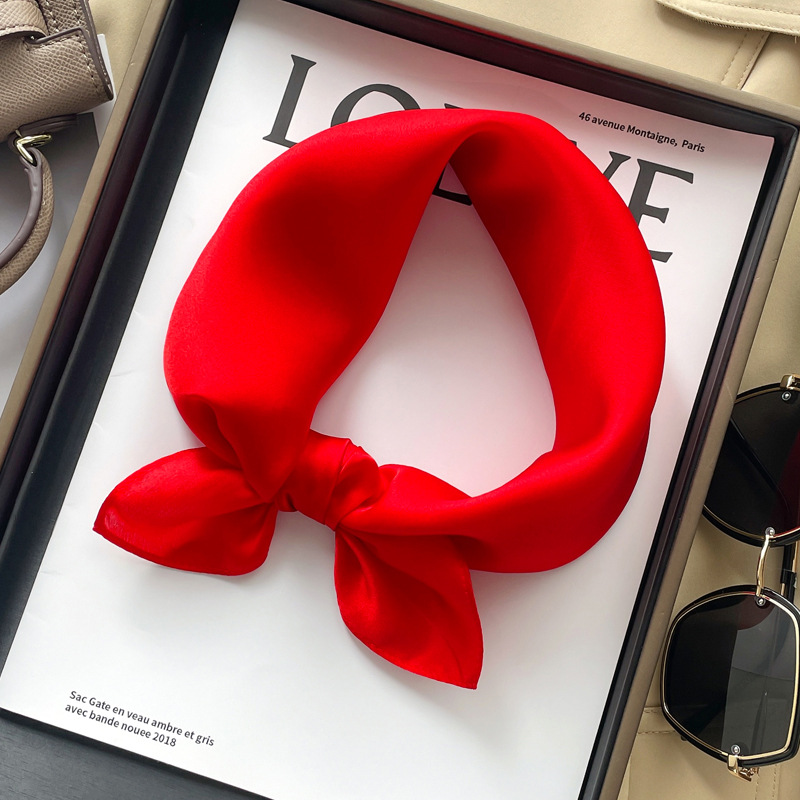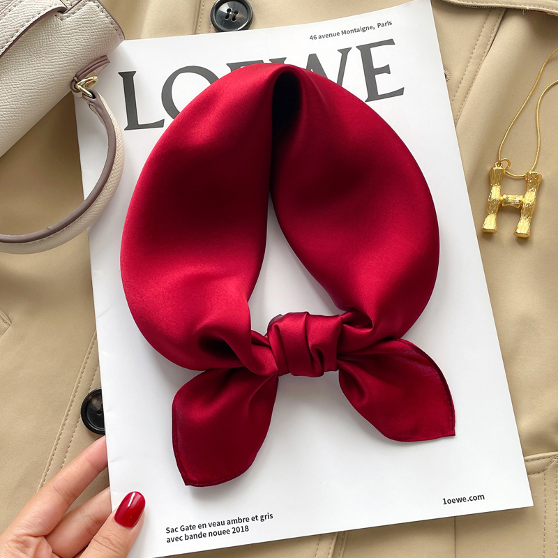 [단색] 실크 뽕나무 실크 작은 사각형 스카프 여성의 다용도 봄과 가을 스카프 세트 도매스토어 가기
