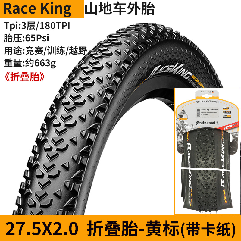 • 레이스 킹 접이식 타이어 27.5x2.0-노란색 라벨 (엘리베이터 포함)