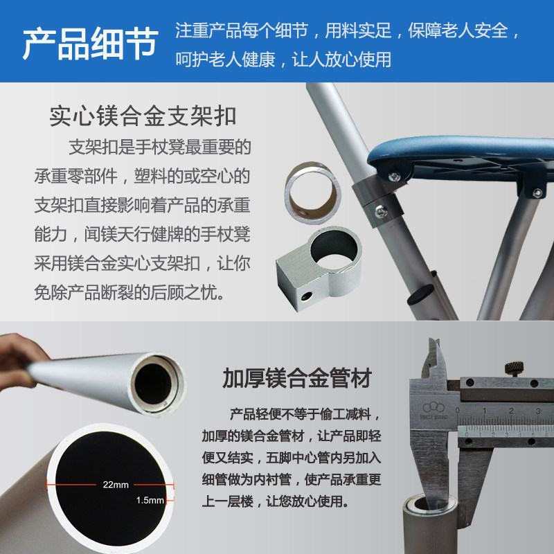 노인을위한 마그네슘 합금 목발 의자 목발 지팡이 지팡이 노인을위한 다리 미끄럼 방지 목발 벤치 접이식 지팡이스토어 가기