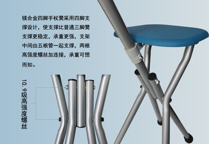 노인을위한 마그네슘 합금 목발 의자 목발 지팡이 지팡이 노인을위한 다리 미끄럼 방지 목발 벤치 접이식 지팡이