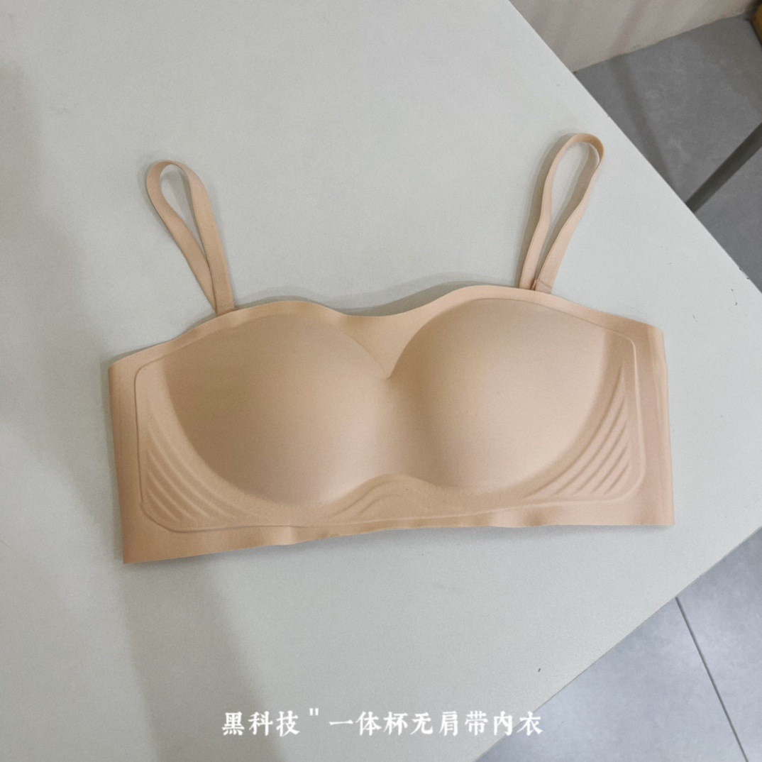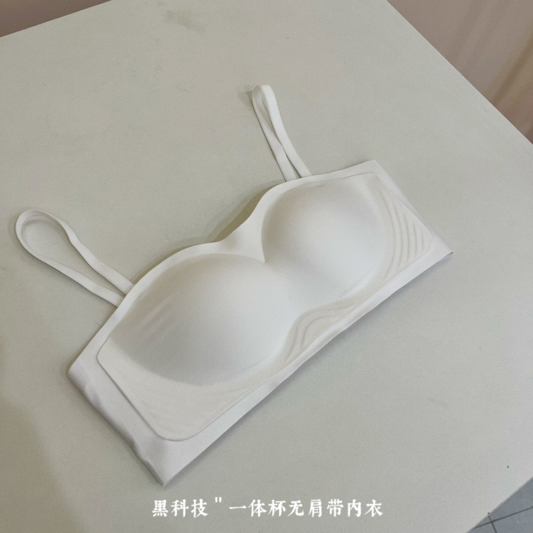 블랙 테크놀로지 한 컵 끈이없는 속옷 여성용 젤리 소프트 지원 확장 버클 보이지 않는 어깨 끈이있는 미끄럼 방지 브래지어