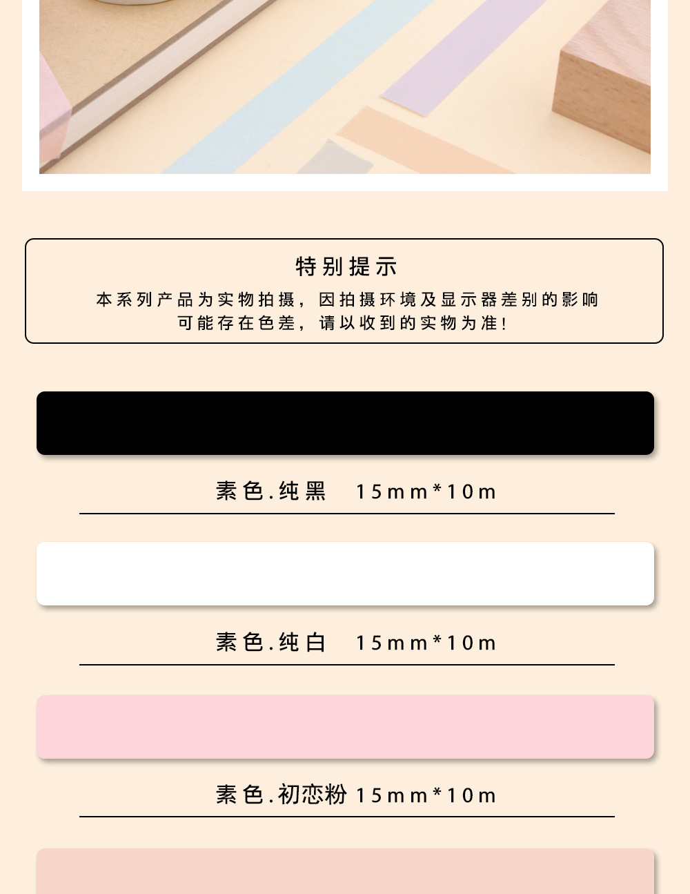 일본 종이 핸드북 1.5cm 테이프 일반 단색 단색 전체 롤 10m 기본 색상 마스킹 흔적없는 유치원스토어 가기