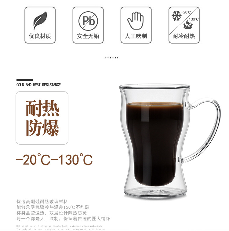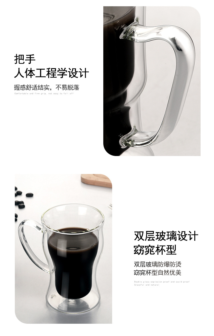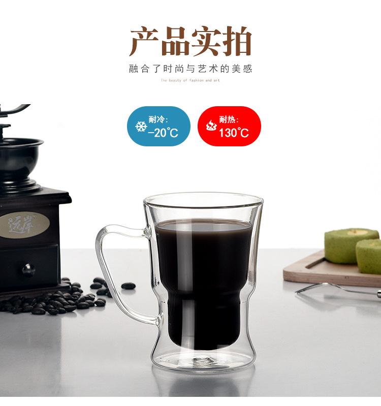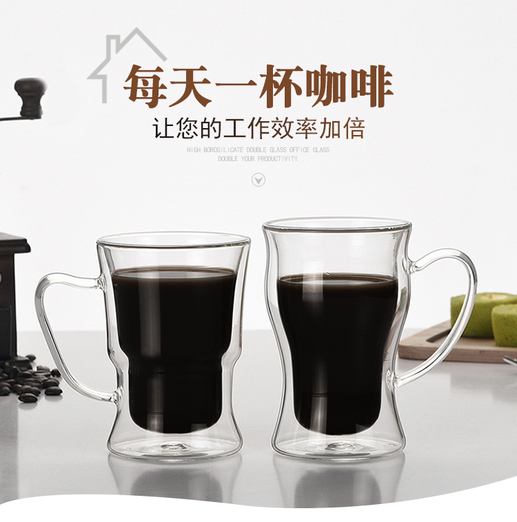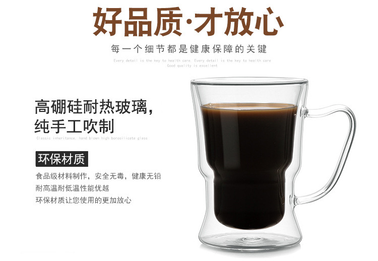 新款高硼硅玻璃水杯创意双层马克杯美式拿铁咖啡杯跨境外贸杯子定制耐热耐高温玻璃杯