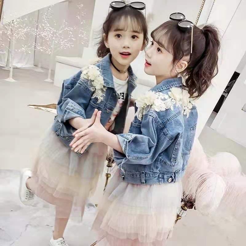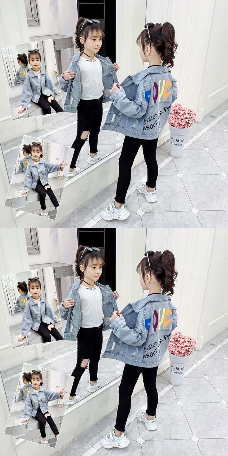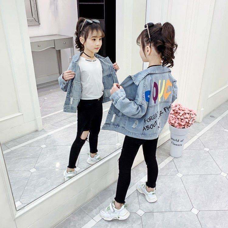여아 데님 재킷 2022 봄과 가을 새로운 유행 인터넷 연예인 어린 소녀 세탁 재킷 소프트스토어 가기