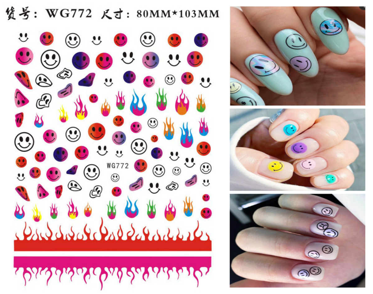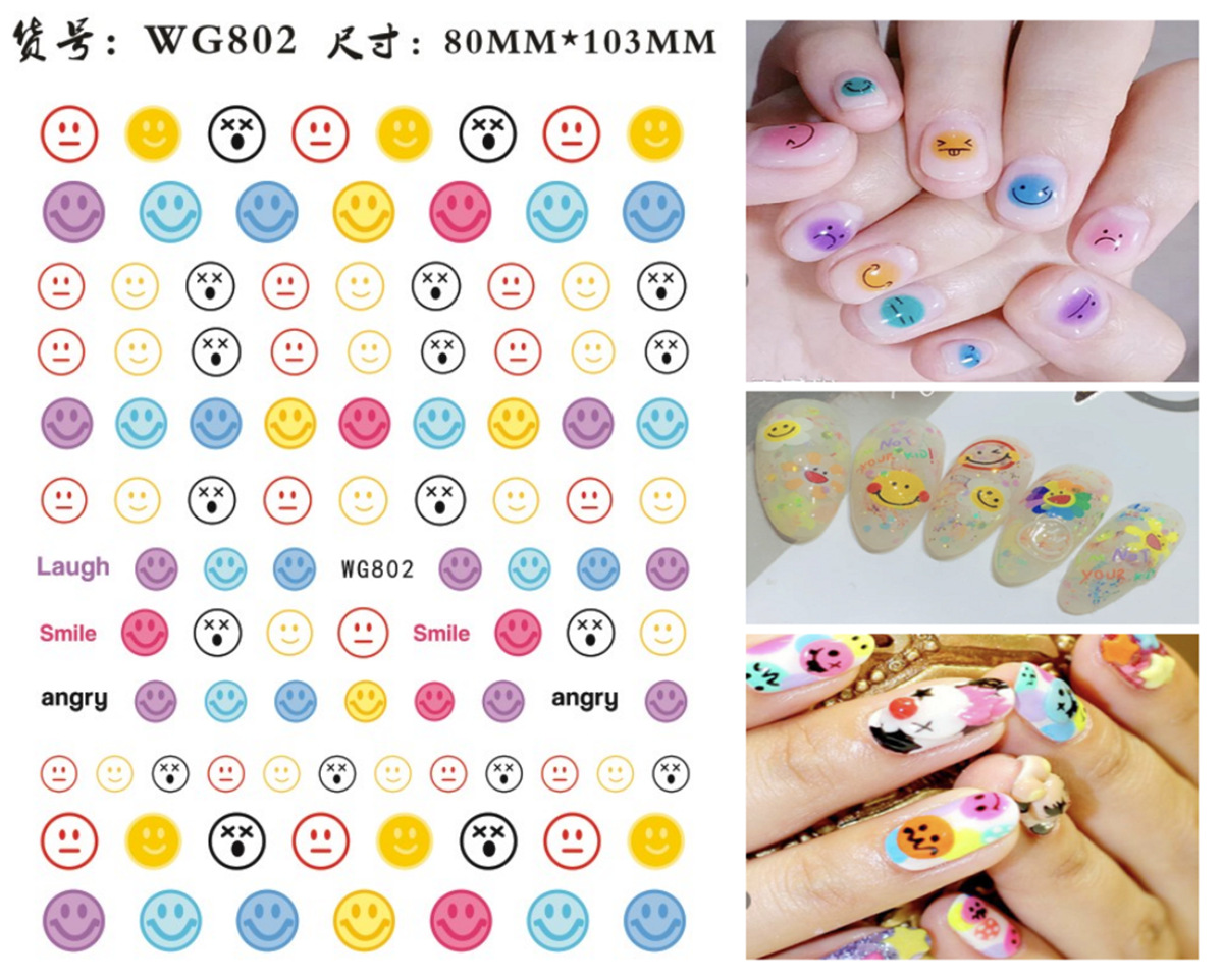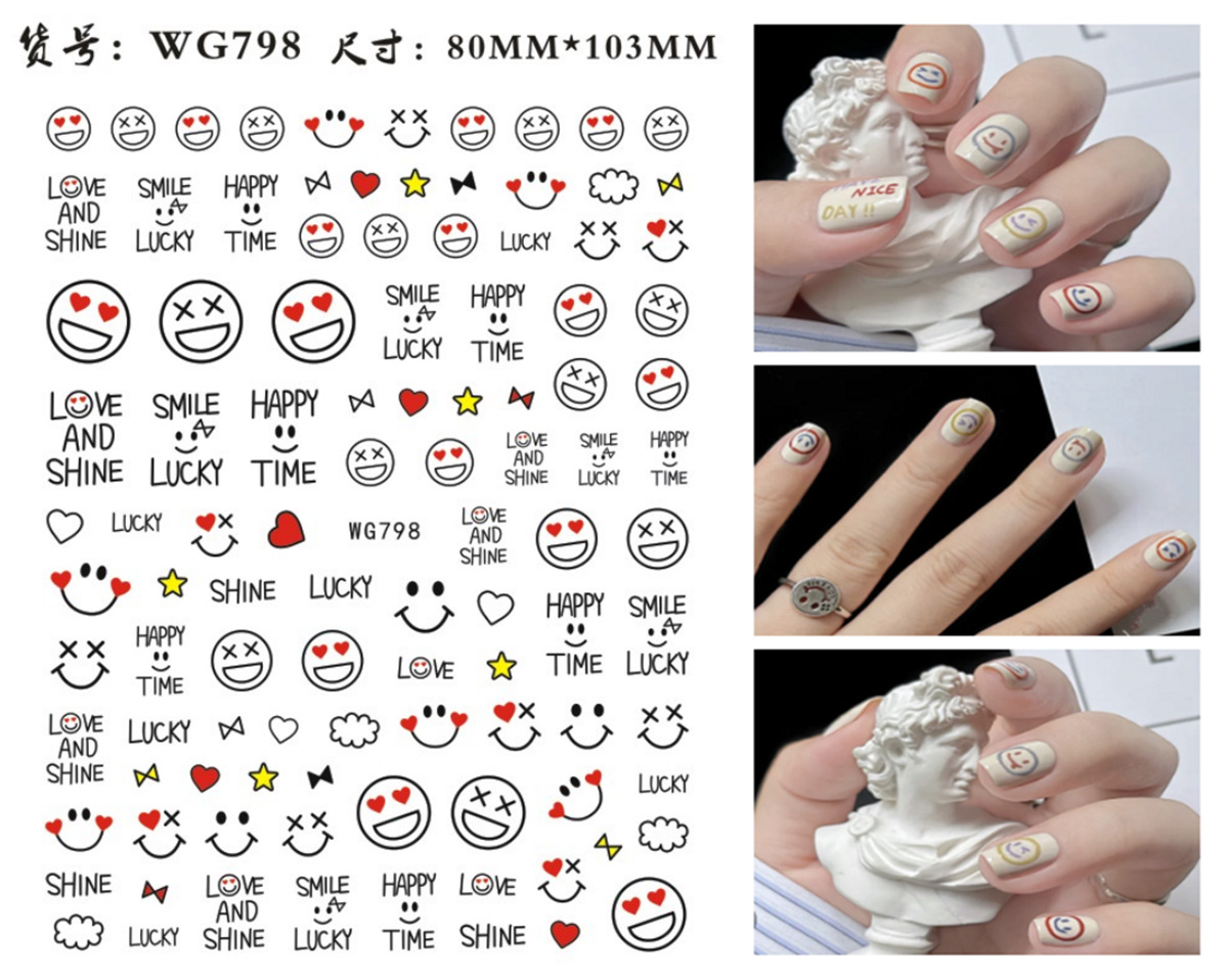 새로운 표현 웃는 얼굴 네일 아트 스티커 국경 간 전자 상거래 네일 아트 사랑 표현 웃는 얼굴 네일 아트 스티커 WG