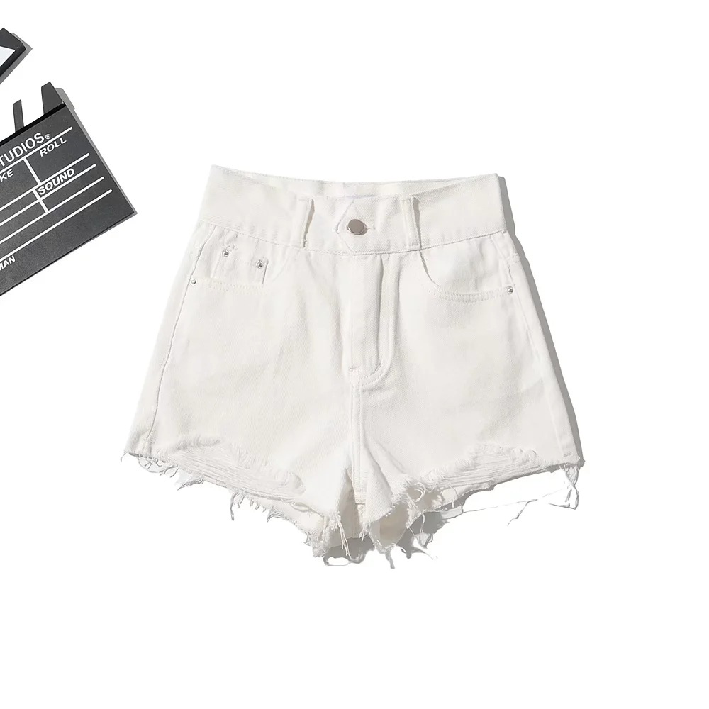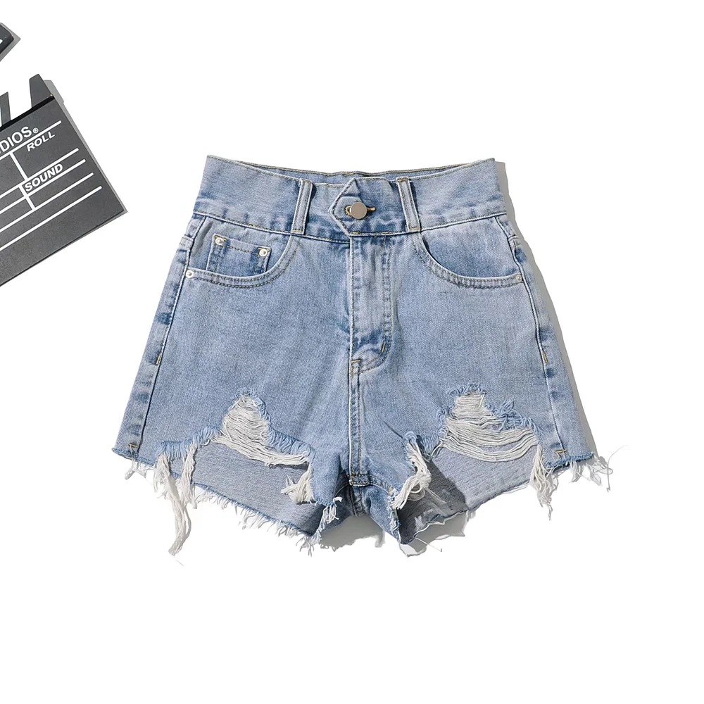 찢어진 데님 반바지 여자의 여름 유행 하이 웨이스트 바지 허리 컷 오프 디자인 느슨한 와이드 레그 진스토어 가기