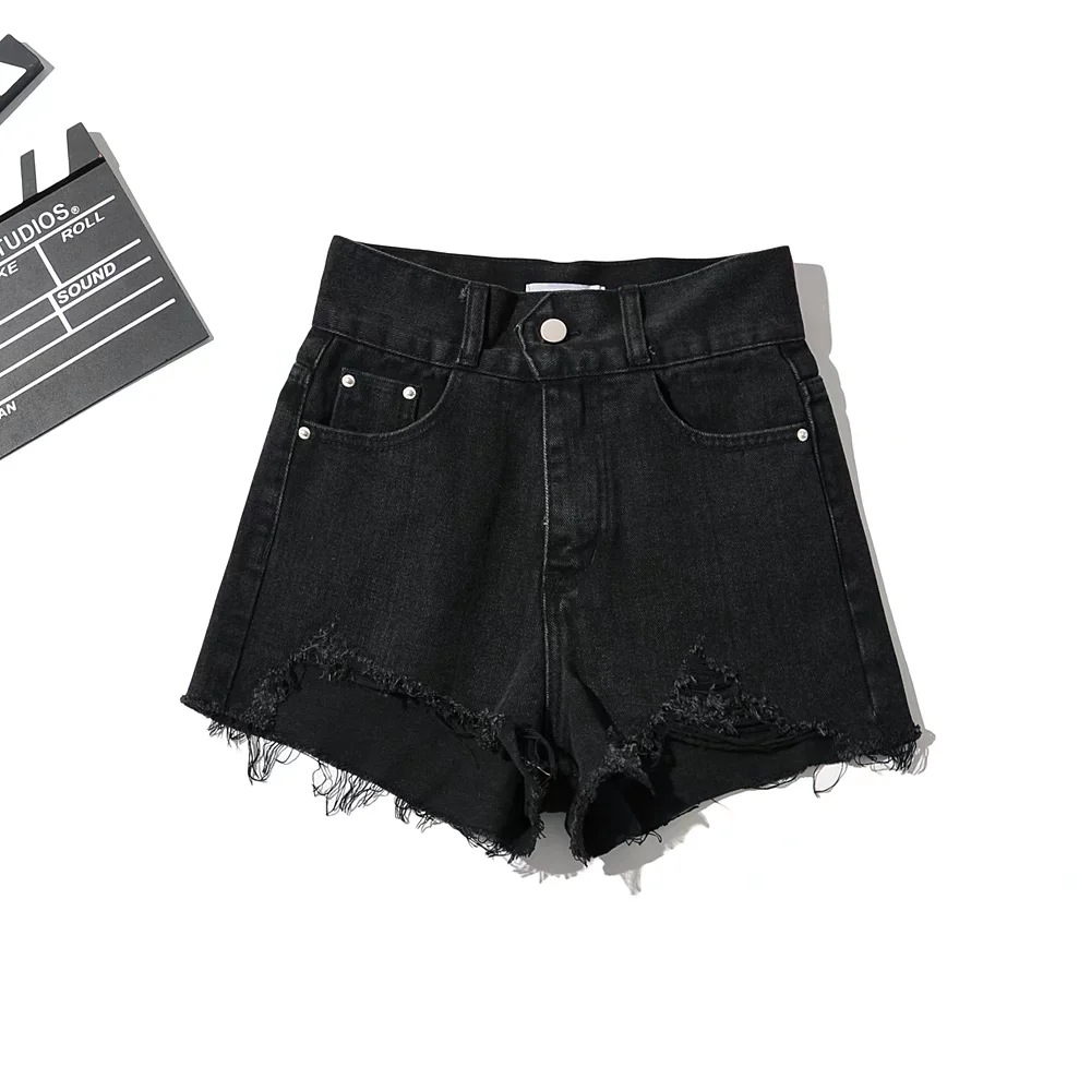 찢어진 데님 반바지 여자의 여름 유행 하이 웨이스트 바지 허리 컷 오프 디자인 느슨한 와이드 레그 진