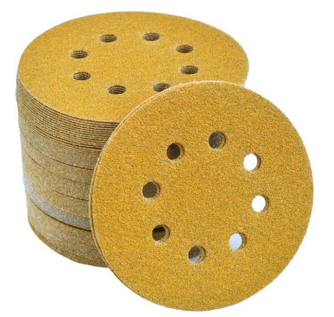 제조 업체 아마존 대외 무역 디스크 사포 몰려 노란 모래 연마 5 인치 125 8 구멍 다시 벨벳 노란 사포