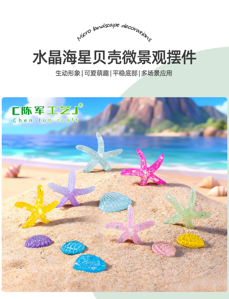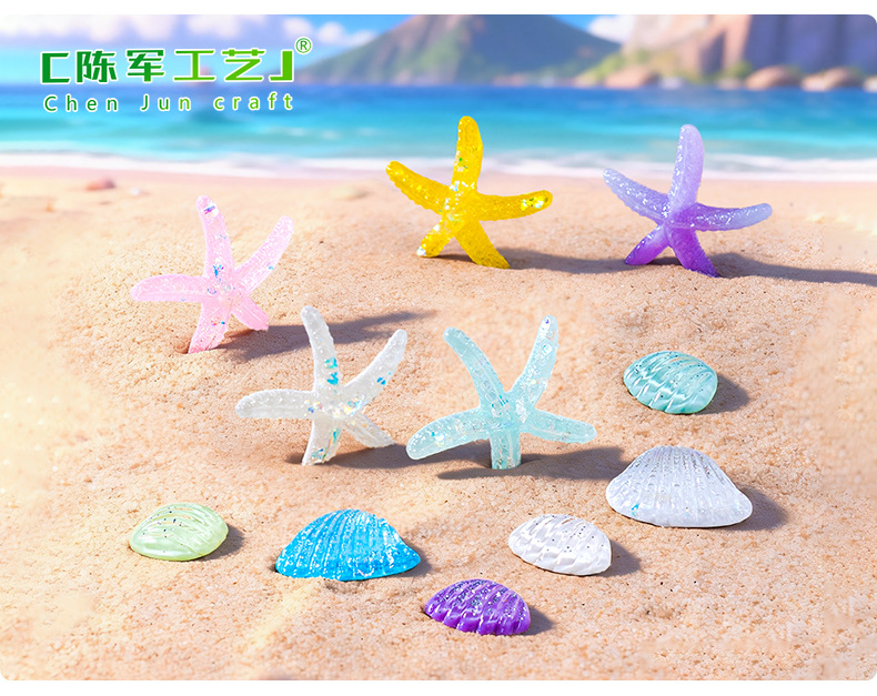 크리스탈 불가사리 쉘 바다보기 액세서리 마이크로 풍경 수지 DIY 미니 플랫 장식품 휴대 전화 케이스 액세서리