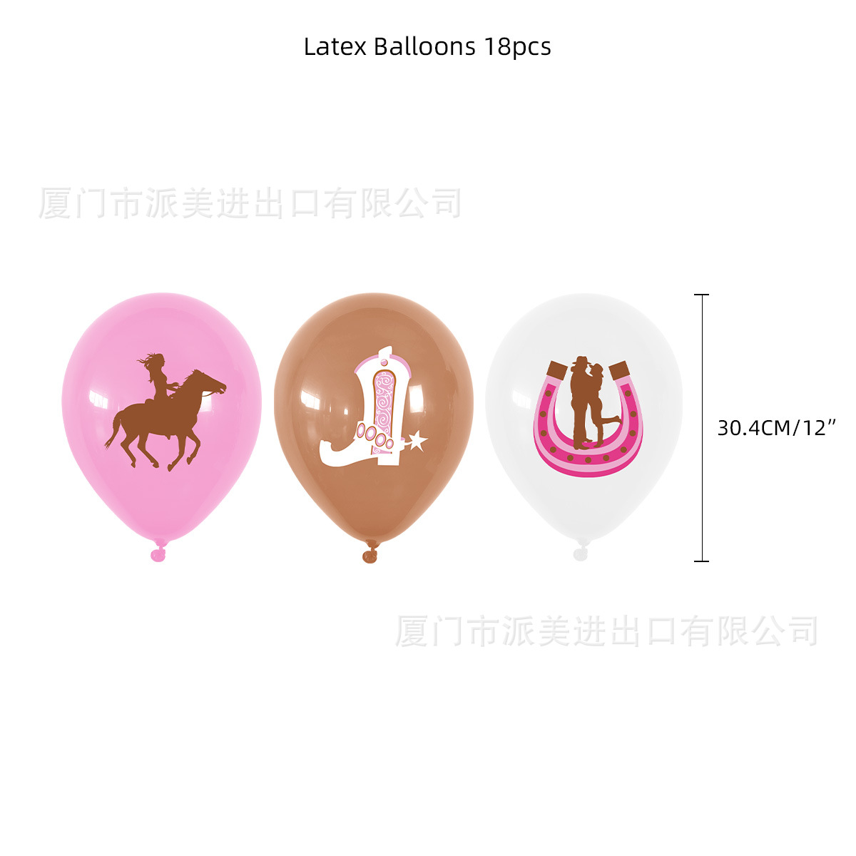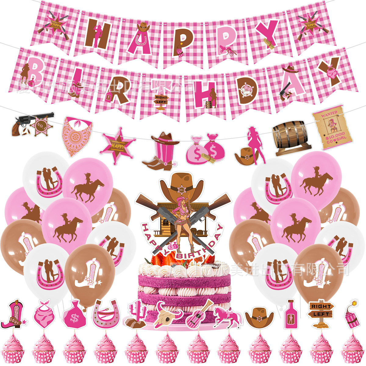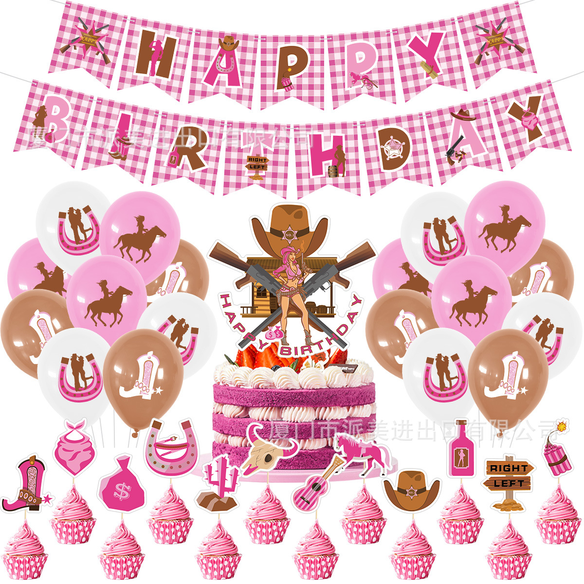 새로운 핑크 카우걸 테마 생일 파티 장식 세트 편지 깃발 케이크 깃발 라텍스 풍선스토어 가기