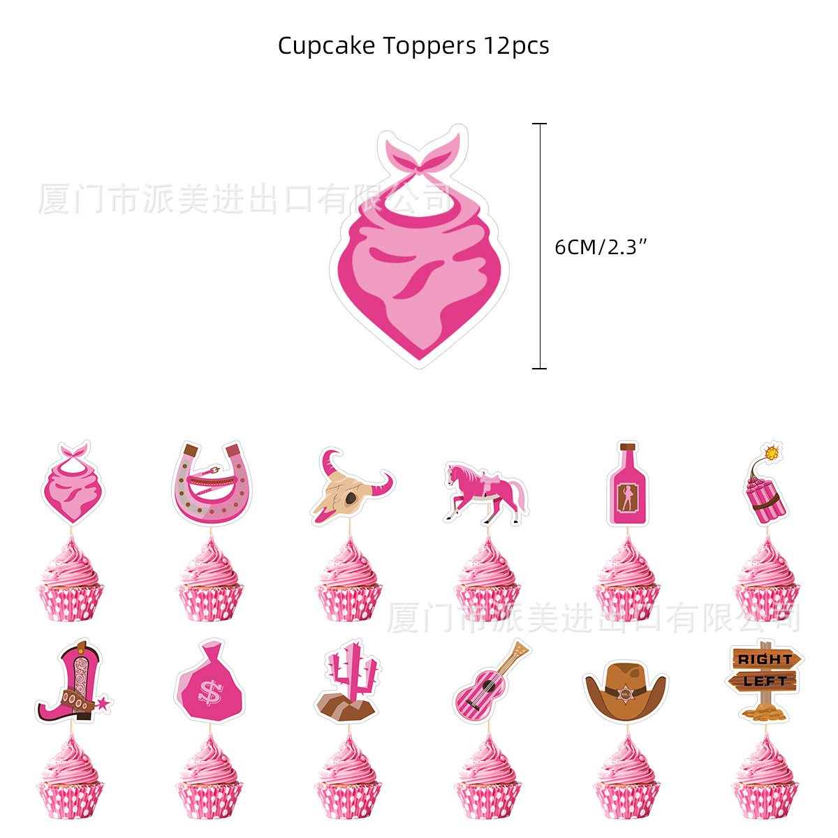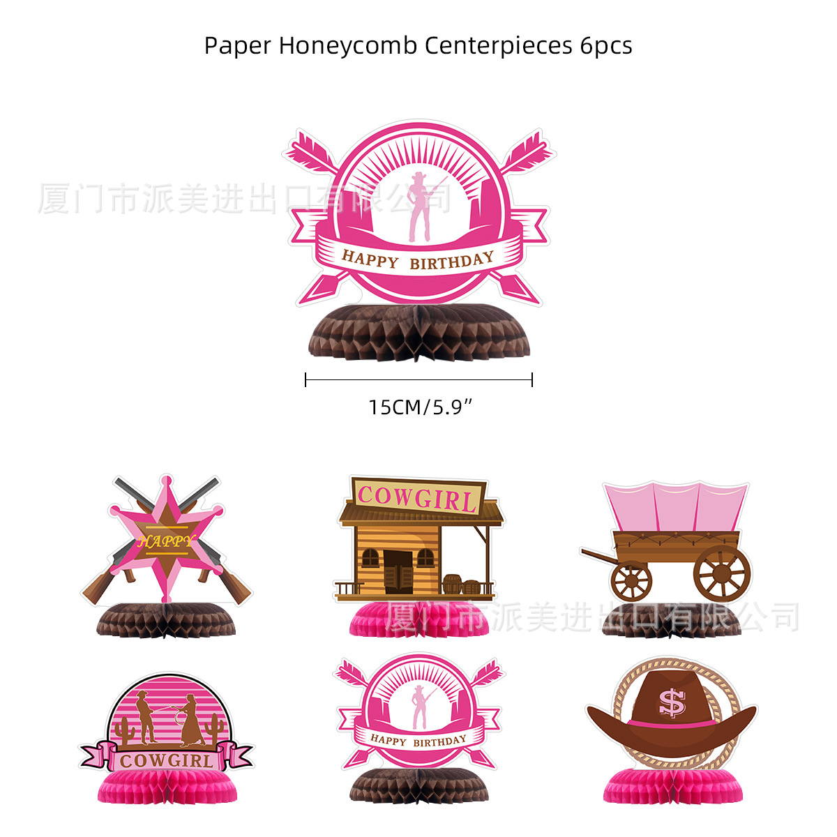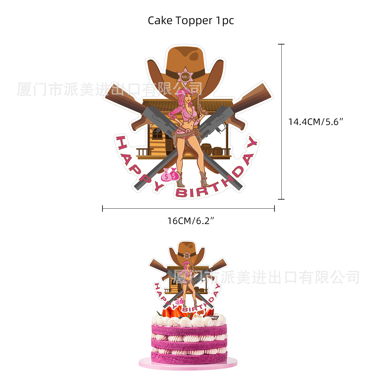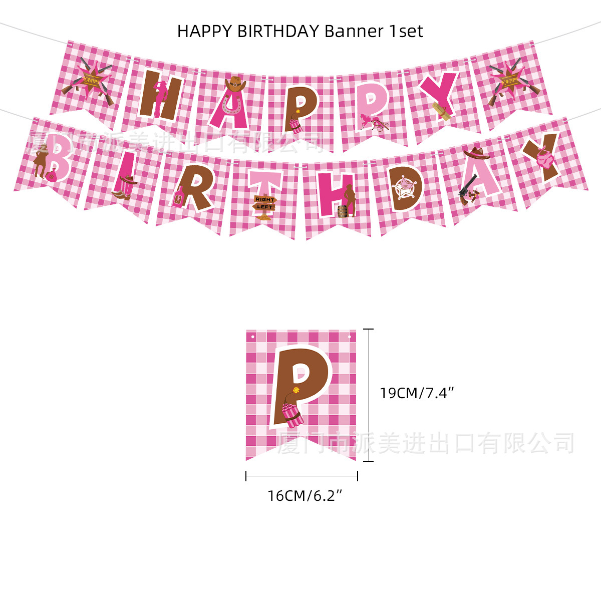 새로운 핑크 카우걸 테마 생일 파티 장식 세트 편지 깃발 케이크 깃발 라텍스 풍선스토어 가기