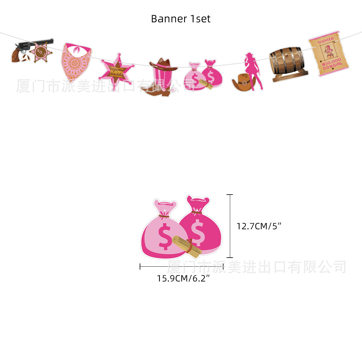 새로운 핑크 카우걸 테마 생일 파티 장식 세트 편지 깃발 케이크 깃발 라텍스 풍선