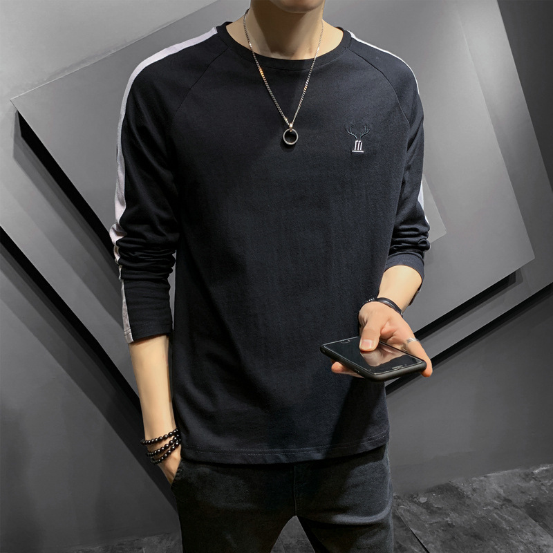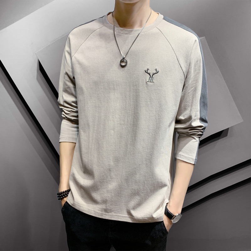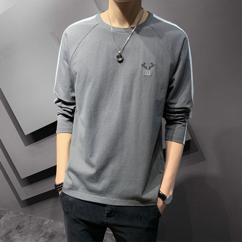 봄과 가을 새로운 긴팔 티셔츠 남성용 트렌디 한 라운드 넥 루즈한베이스 셔츠 심플 패션 면 캐주얼 남성복스토어 가기