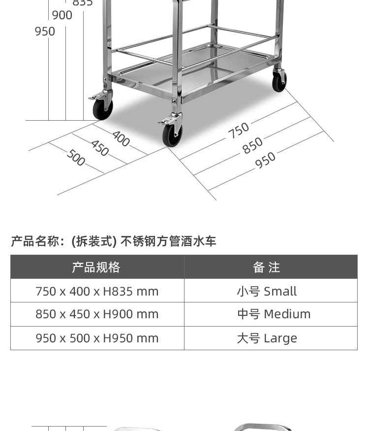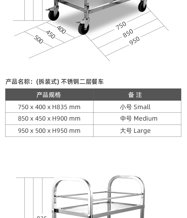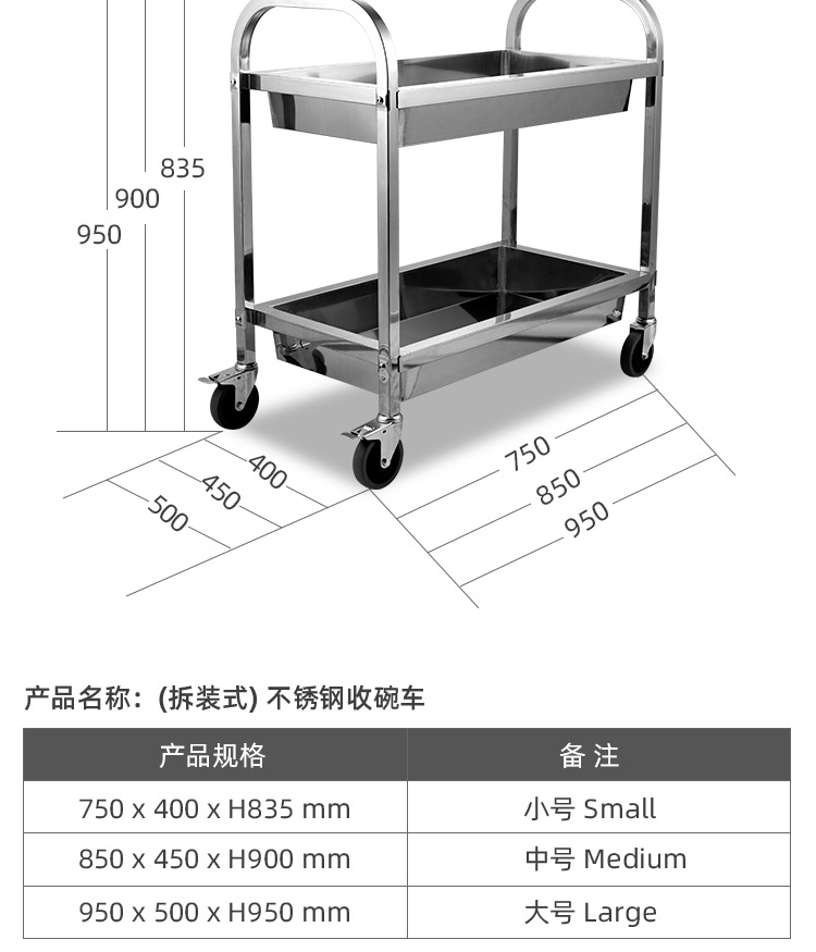• 매우 두꺼운 중간 크기의 2 층 그릇 카트
