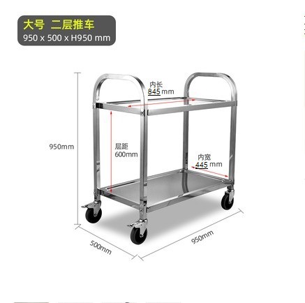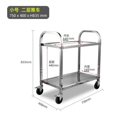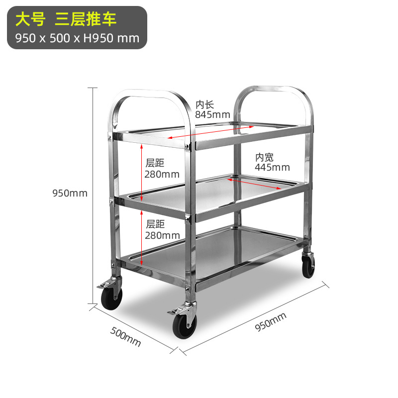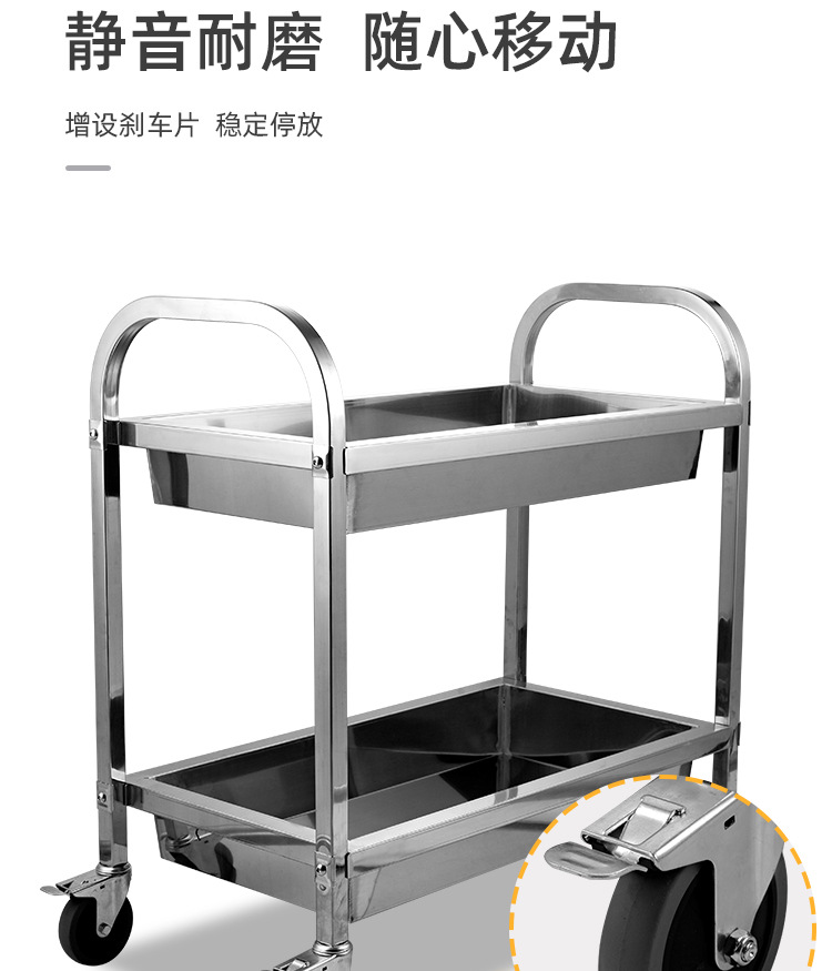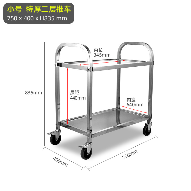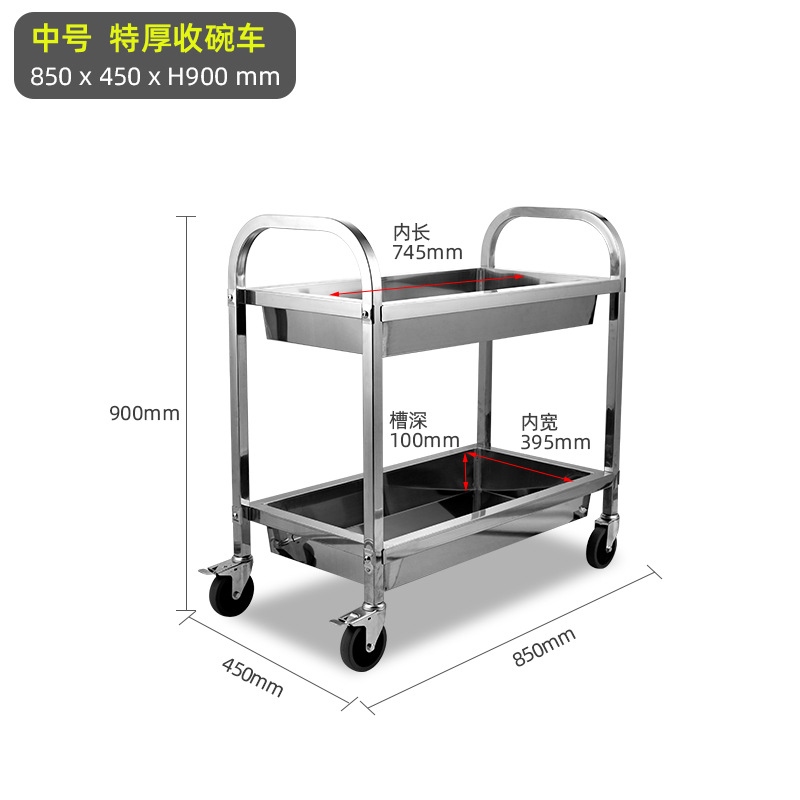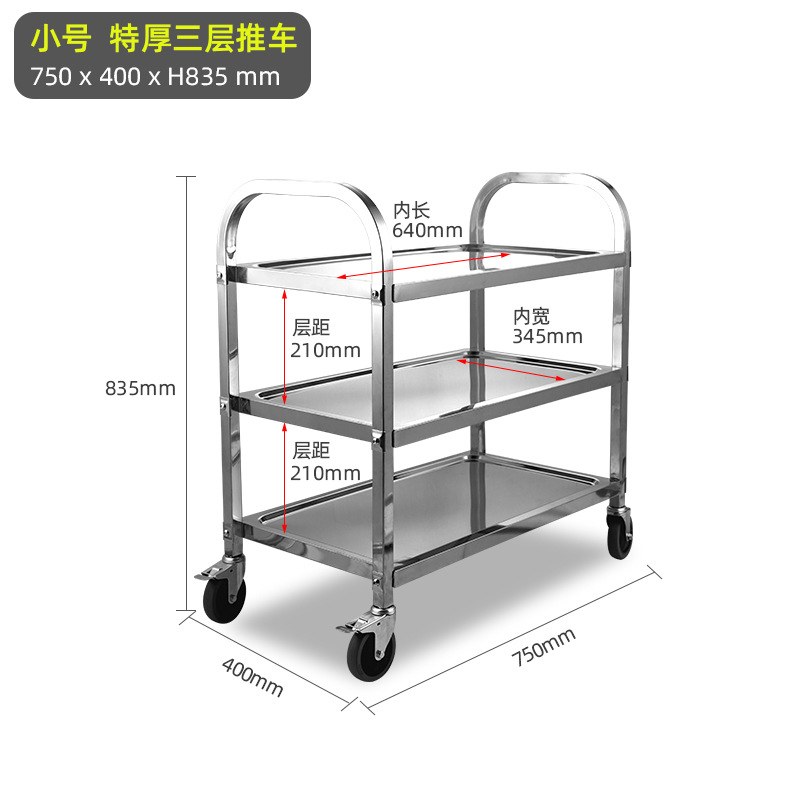 두꺼운 스테인레스 스틸 다이닝 카 트롤리 3 층 배달 자동차 트롤리 상업용 레스토랑 다이닝 카 더블 레이어 보울 카트