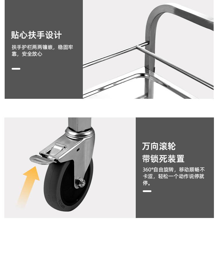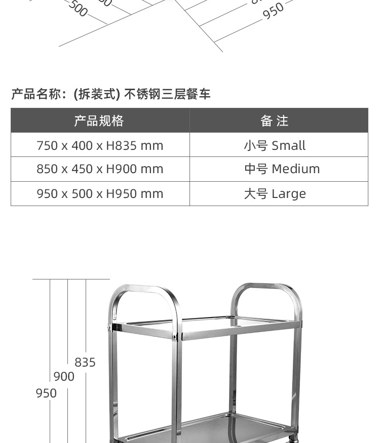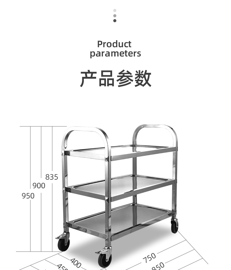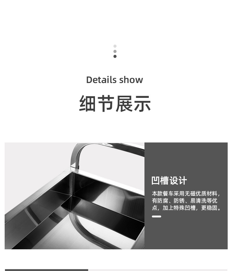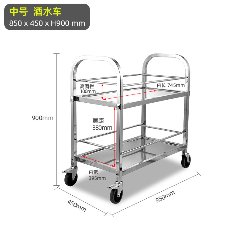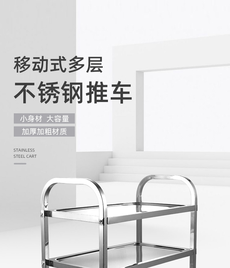 두꺼운 스테인레스 스틸 다이닝 카 트롤리 3 층 배달 자동차 트롤리 상업용 레스토랑 다이닝 카 더블 레이어 보울 카트