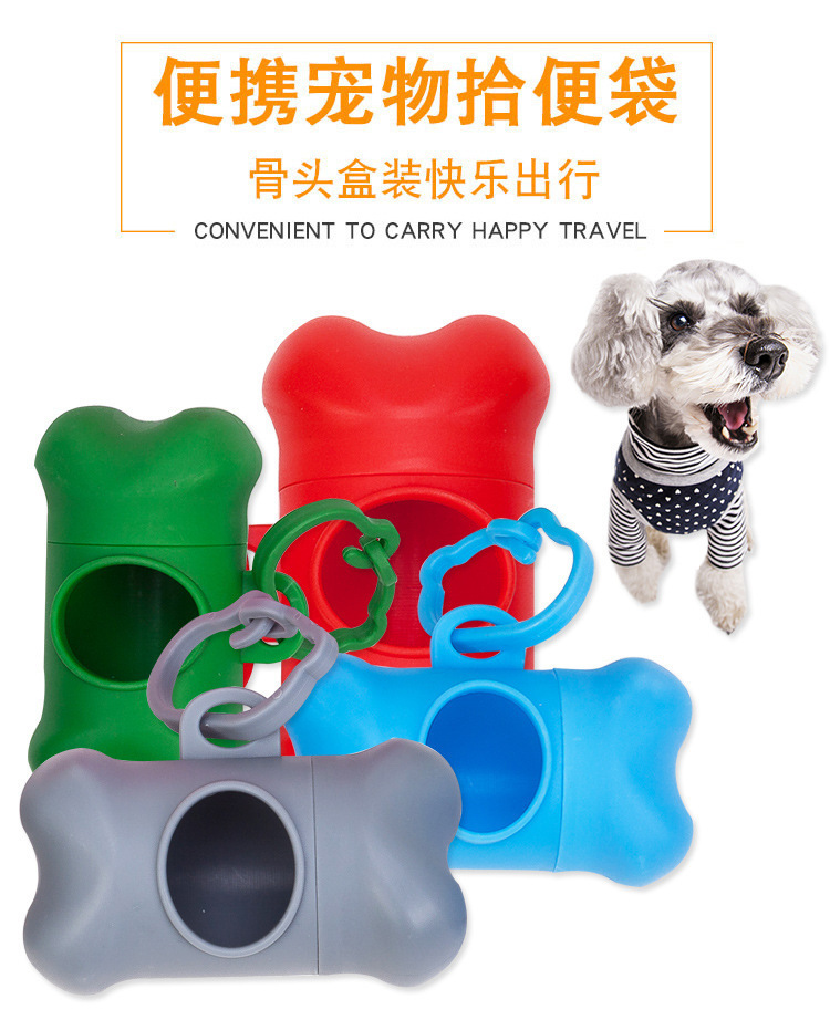 귀여운 뼈 모양 애완 동물 밖으로 휴대용 픽업 가방 쓰레기 봉투 디스펜서 후크 재고 도매스토어 가기