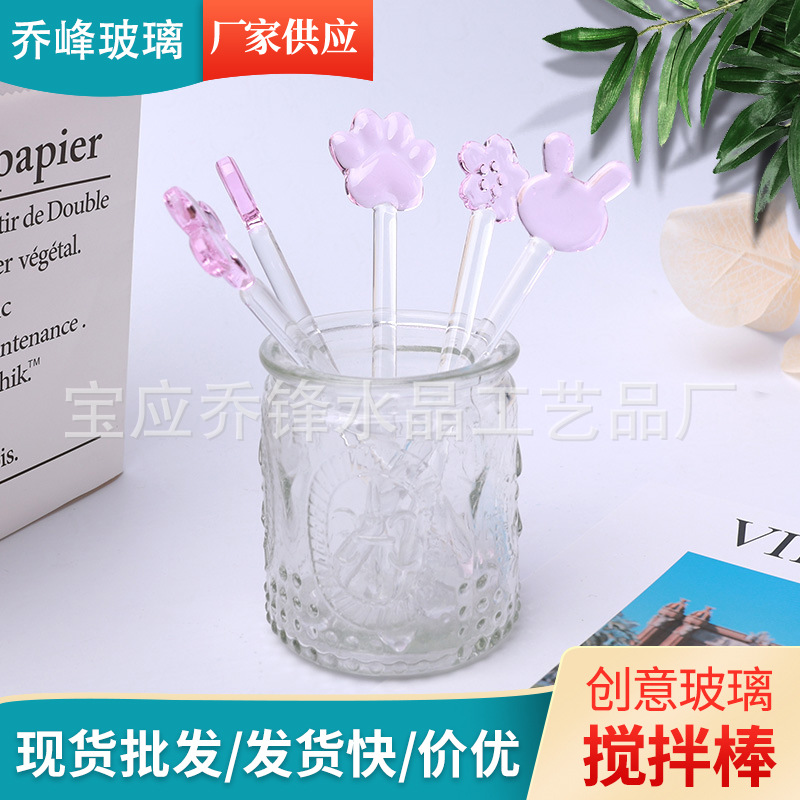 한국식 in 귀여운 핑크 시리즈 유리 교반 막대 핑크 다양 한 크리스탈 스푼 두꺼운 커피 믹싱 스푼스토어 가기