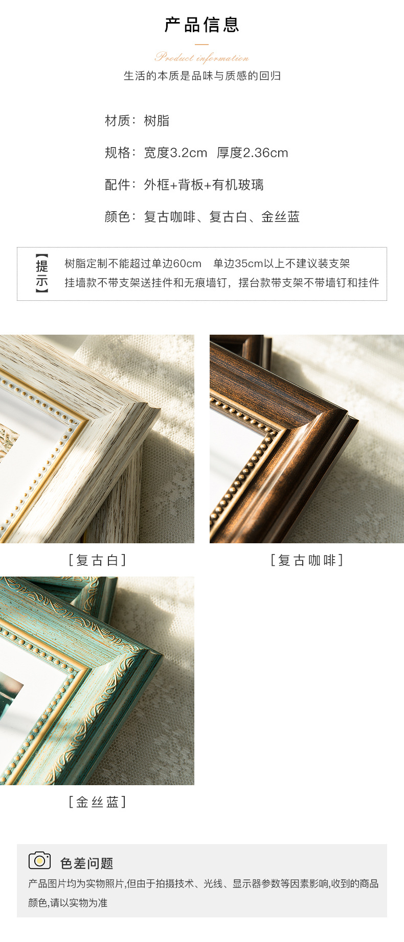 美式复古创意相框摆台6寸7寸8寸10寸12寸框架挂墙洗照片做成相框