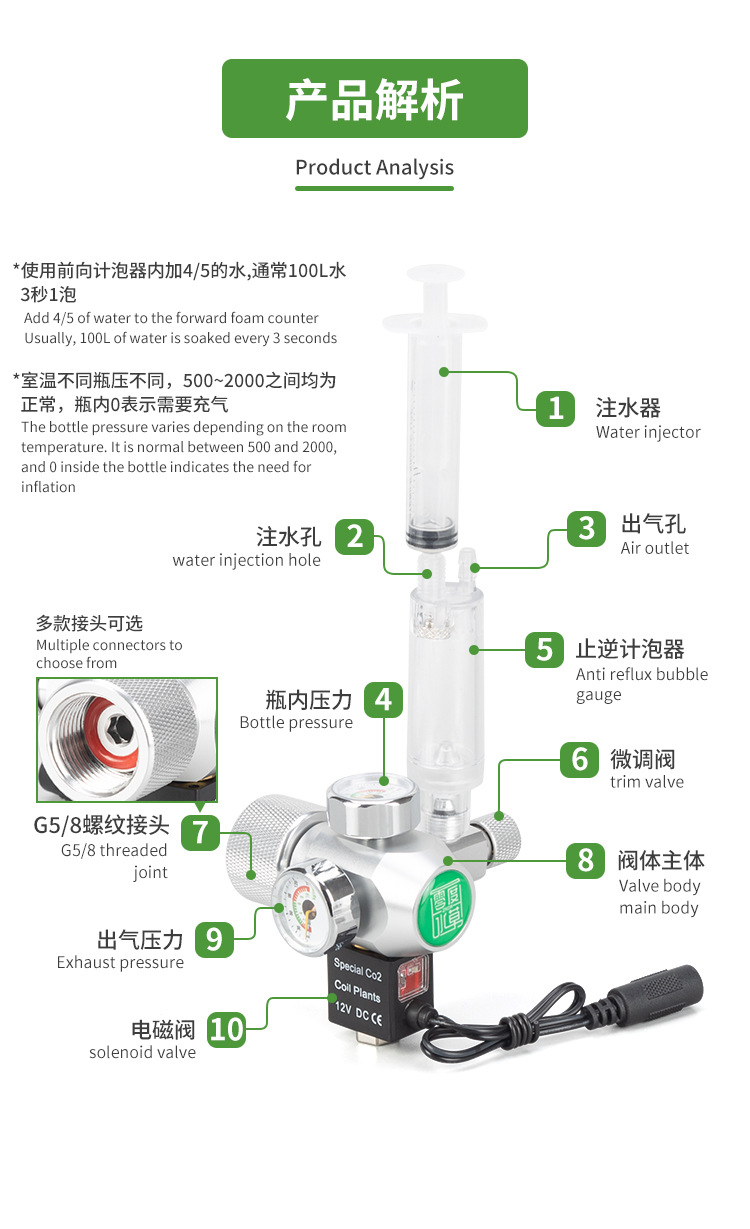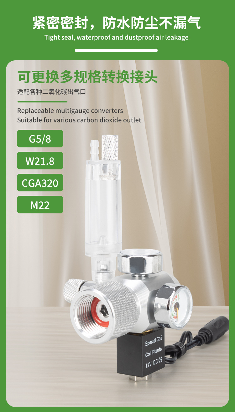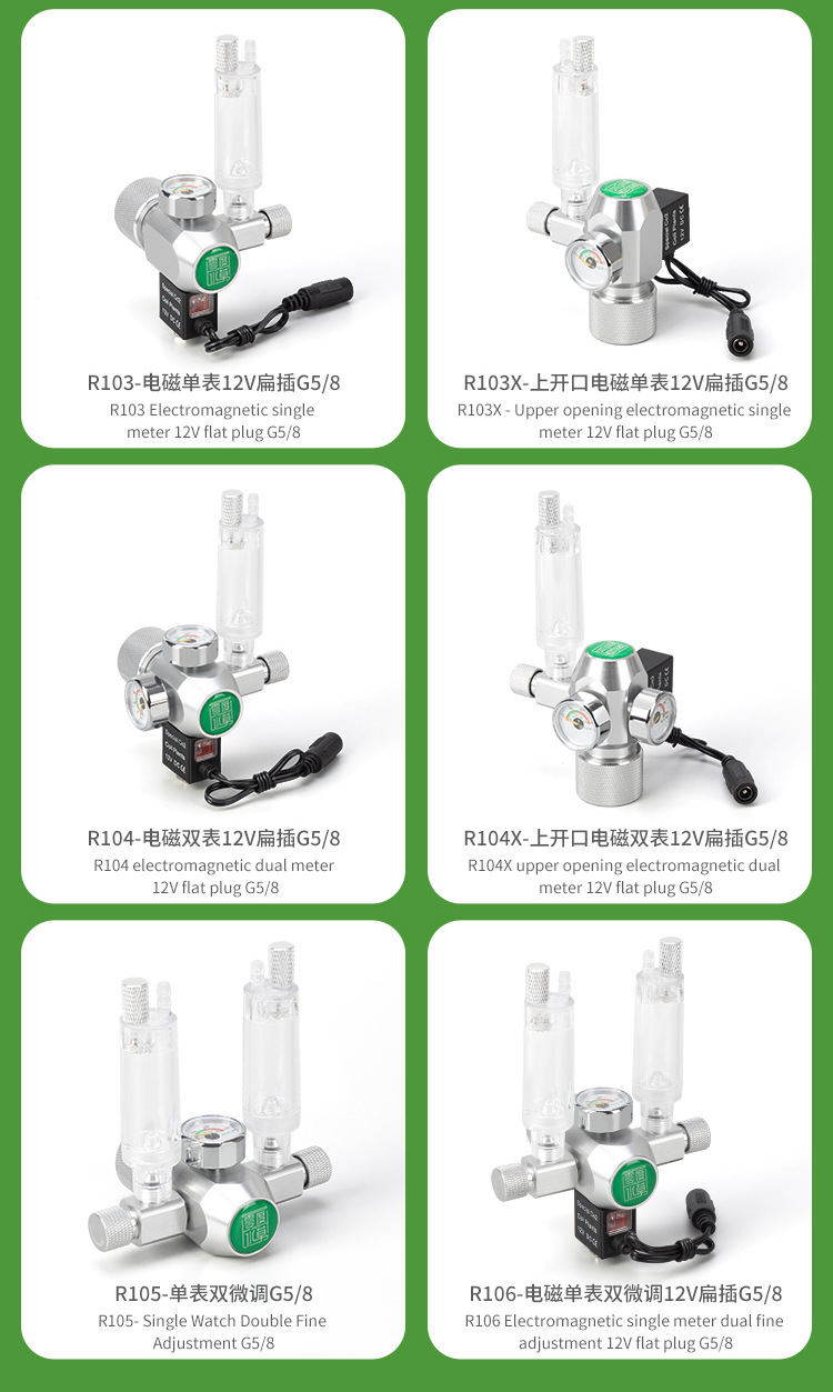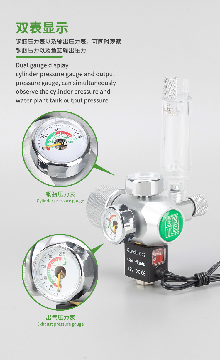 ZRDR 이산화탄소 실린더 감압 측정기 세트 co2 알루미늄 합금 단일 및 이중 측정기 수조 용 전자기 감압 밸브