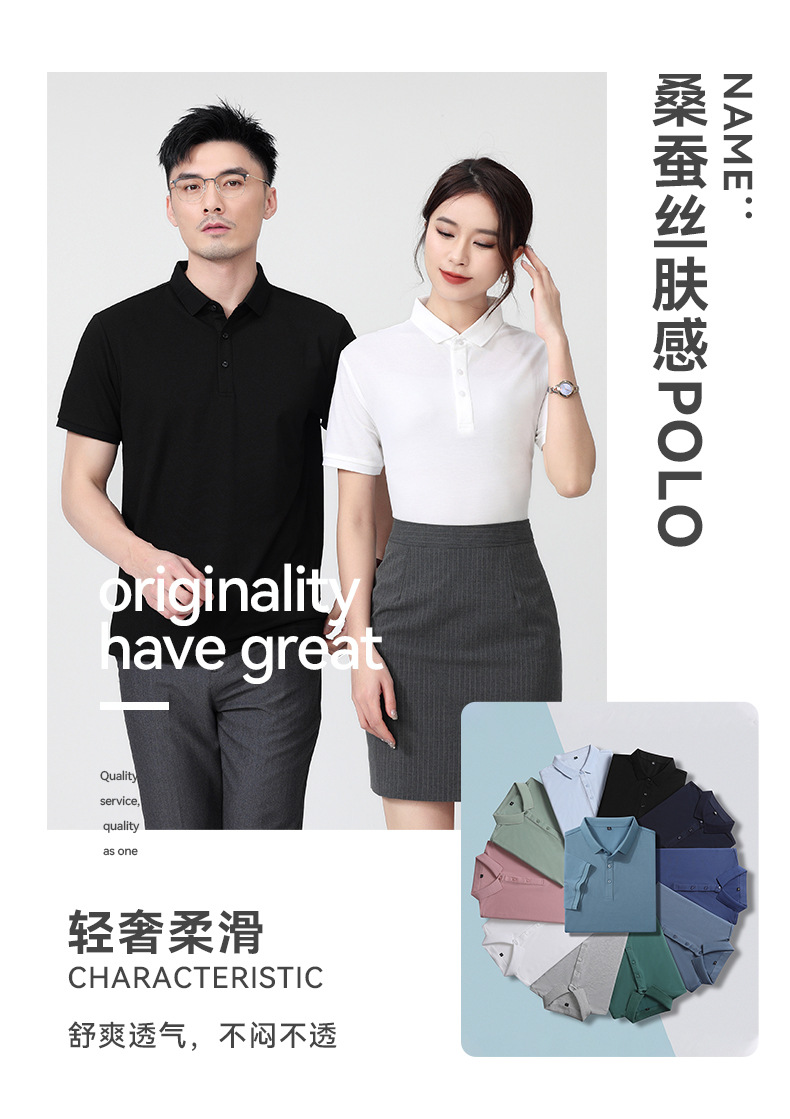 웨이롱 의류 실크 혼방 폴로 셔츠 남성용 가벼운 캐주얼 반팔 티셔츠 여름 폴로 카라 티셔츠 슬릿 디자인