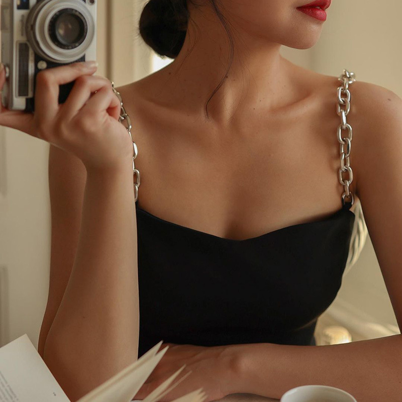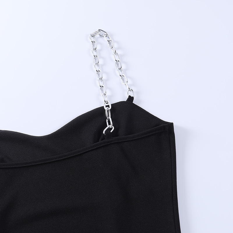 유럽과 미국 대외 무역 2023 여름 새로운 단색 우아한 분할 엉덩이 슬림 U-넥 체인 슬링 원피스 여성스토어 가기