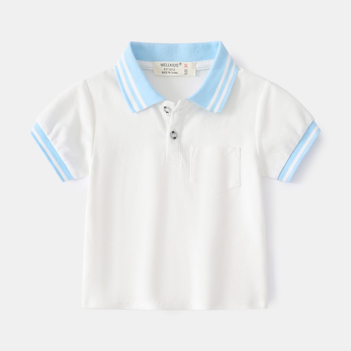 2023 여름 소년 반팔 폴로 셔츠 대학식 캐주얼 라펠 짧은 T 컬러 매칭 보습 어린이 티셔츠스토어 가기
