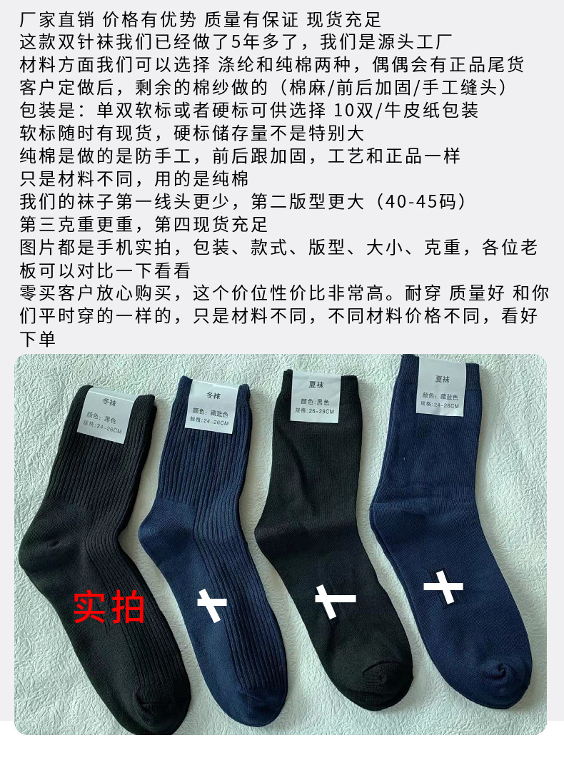 零买的客户主要看一下颜色。纯棉版是中间的这个袜子,颜色是很深的 藏青色。和涤纶的藏蓝色不一样的!!!!!!