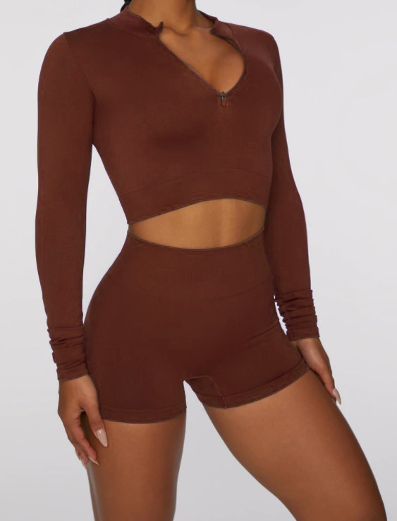 나프탈렌 새로운 크로스 보더 원활한 니트 요가 세트 지퍼 긴 소매 속건 스포츠 피트니스 반바지 세트 여성스토어 가기