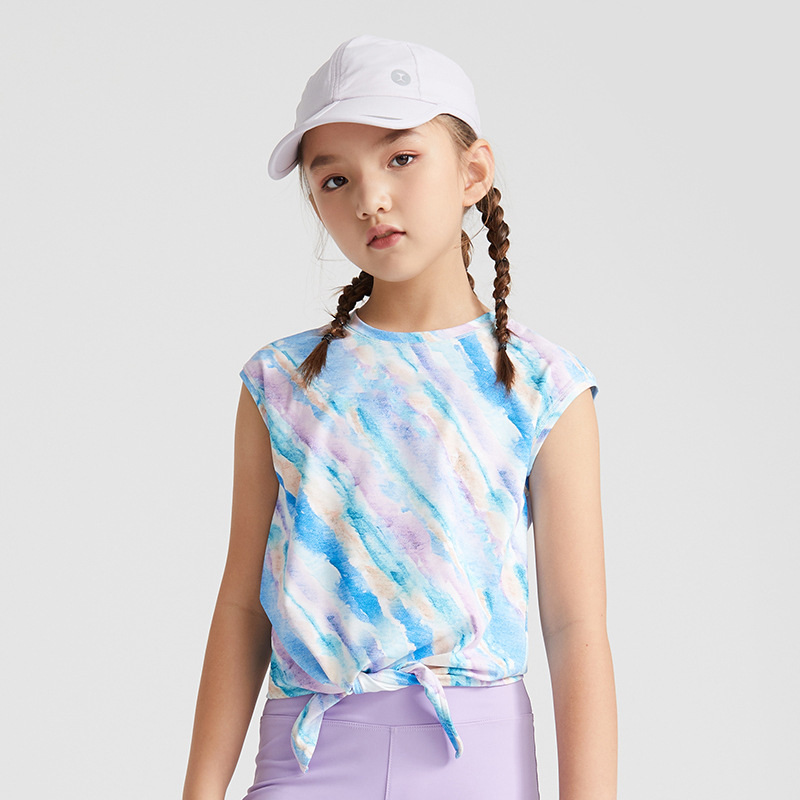 아마존 소녀 요가 조끼 여름 새로운 민소매 습식 및 건식 착용 속건 스포츠 매듭 피트니스 탑스토어 가기
