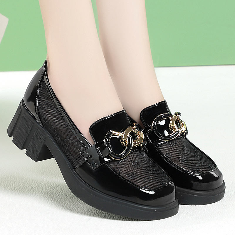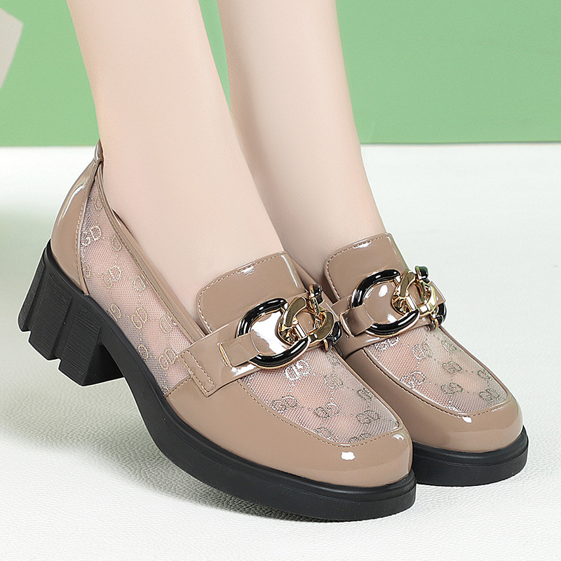 메쉬 로퍼 여성 여름 2022 새로운 두꺼운 굽 플랫폼 단층 신발 영국 스타일 슬립온 슈퍼 소프트 메쉬 신발스토어 가기