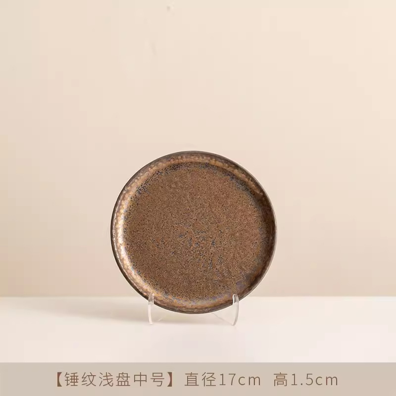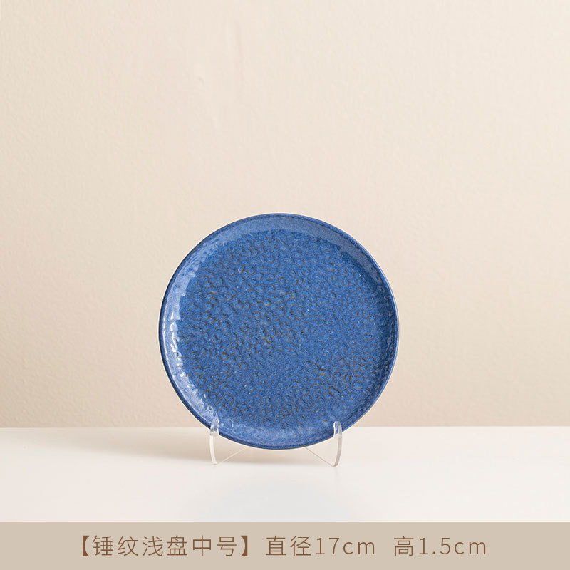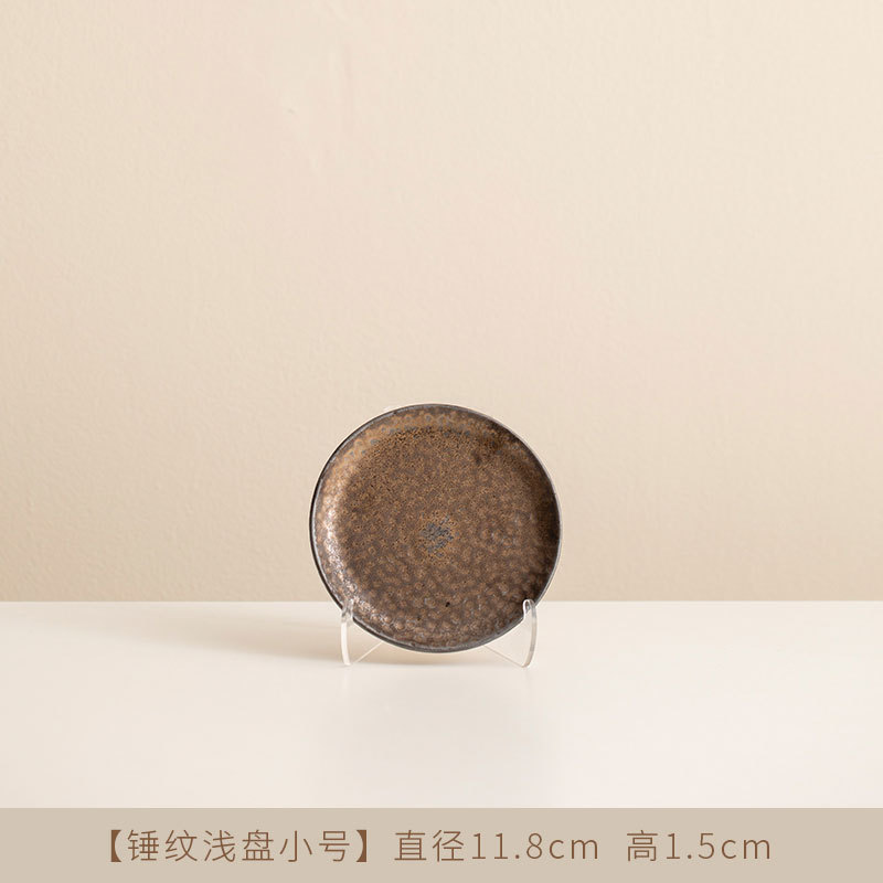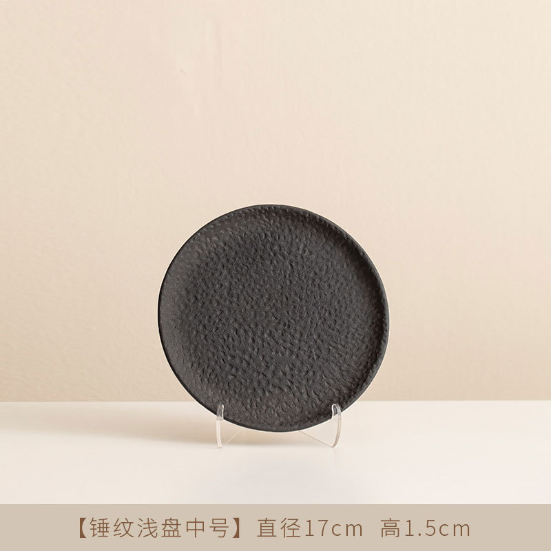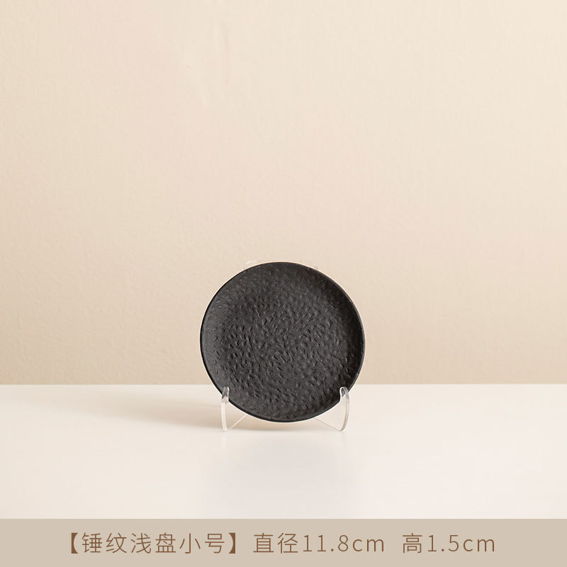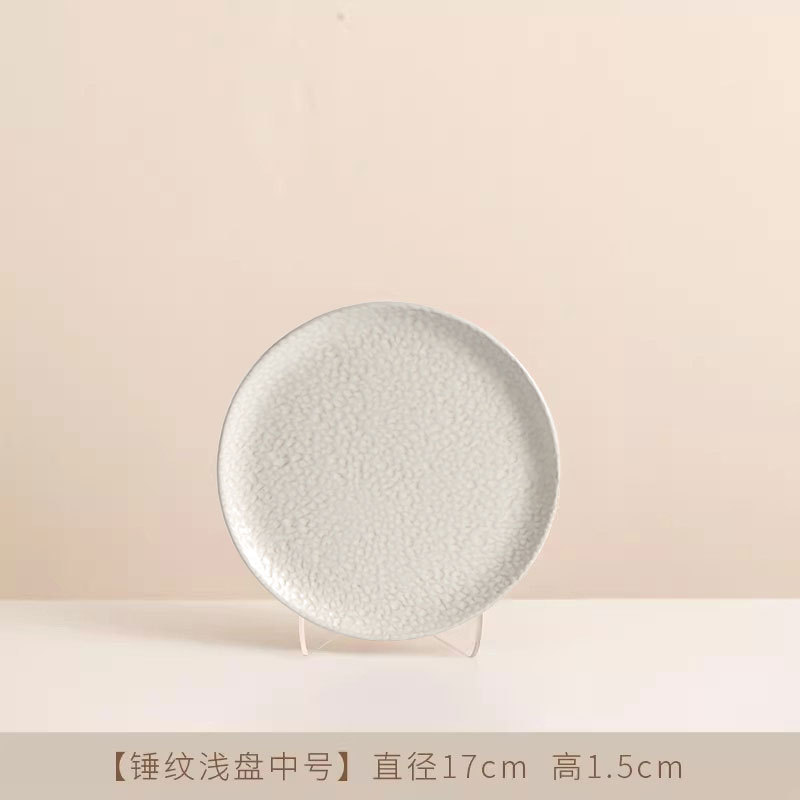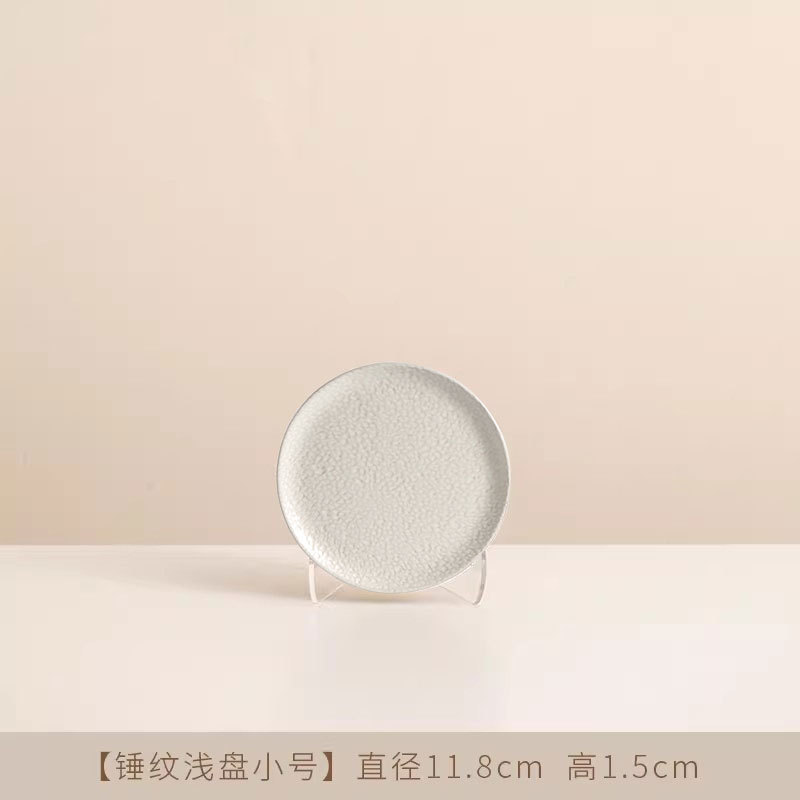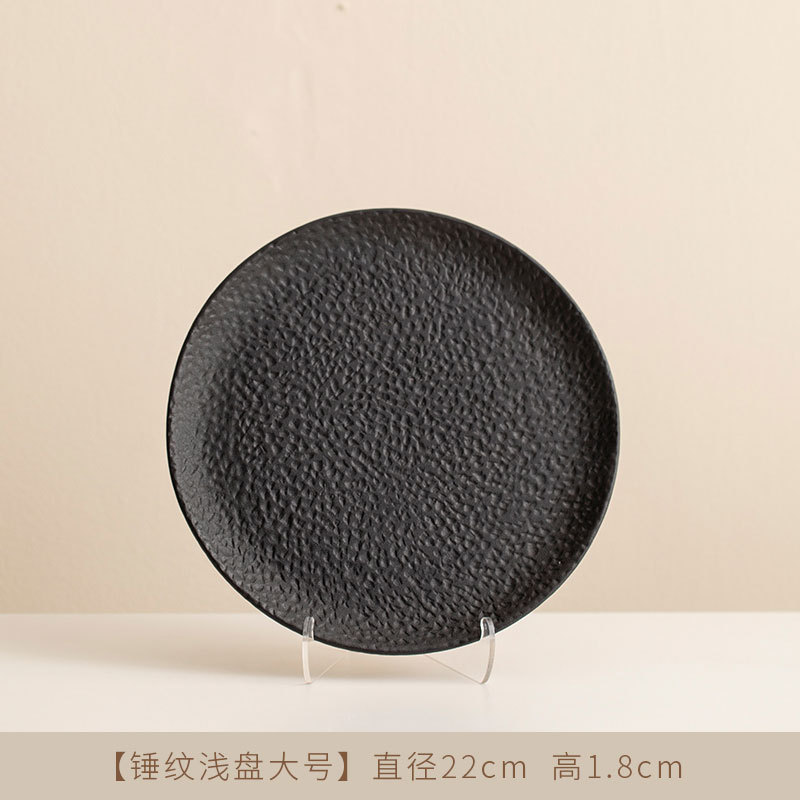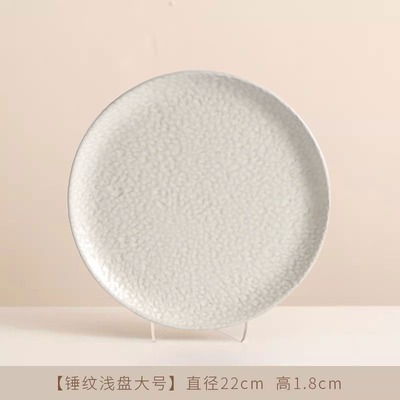 Jiutian 구운 거친 도자기 접시 높은 아름다움 가치 침 뼈 접시 호텔 식기 망치 패턴 가정용 작은 접시 세라믹 스테이크 서양 접시스토어 가기