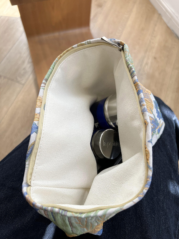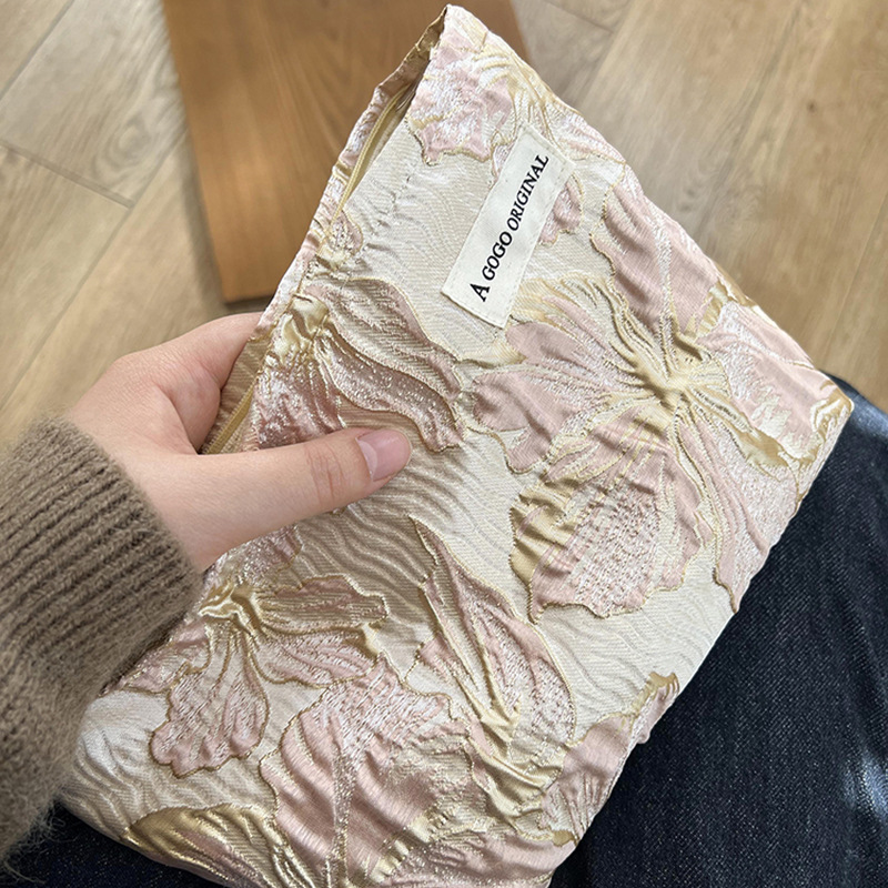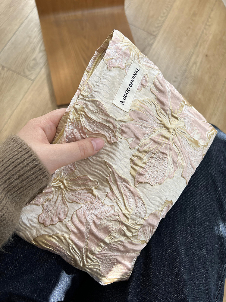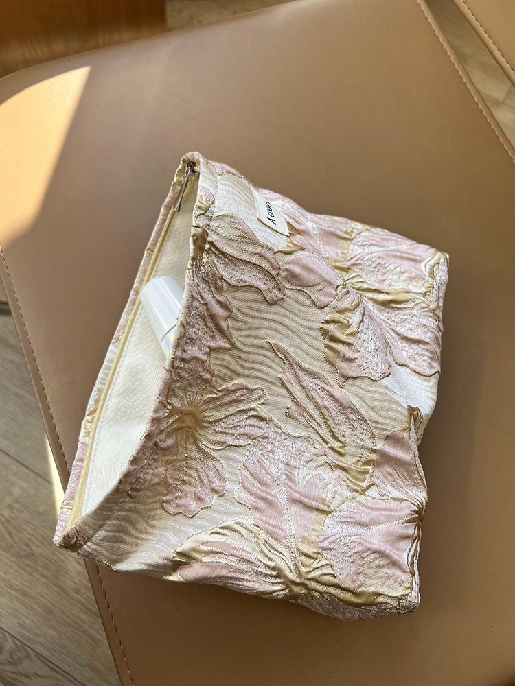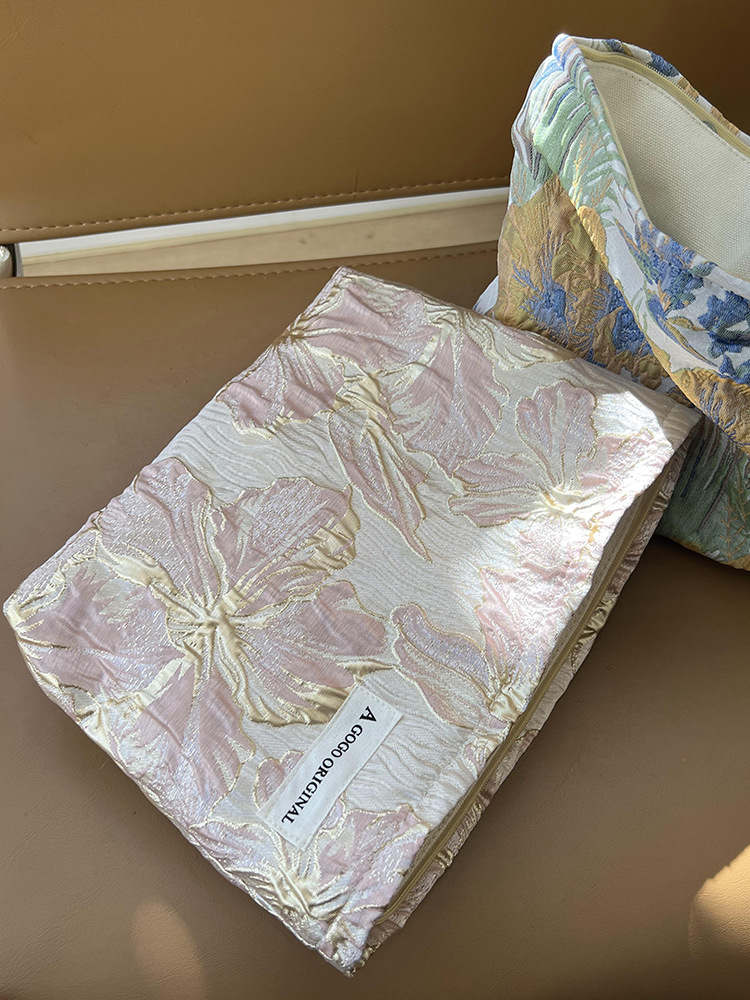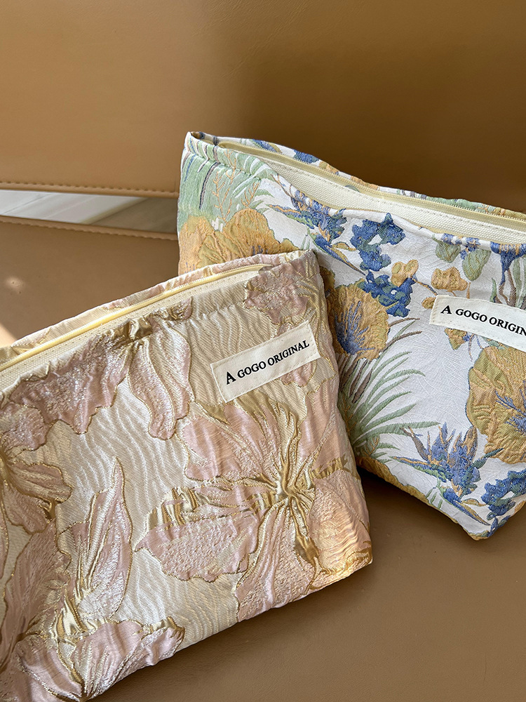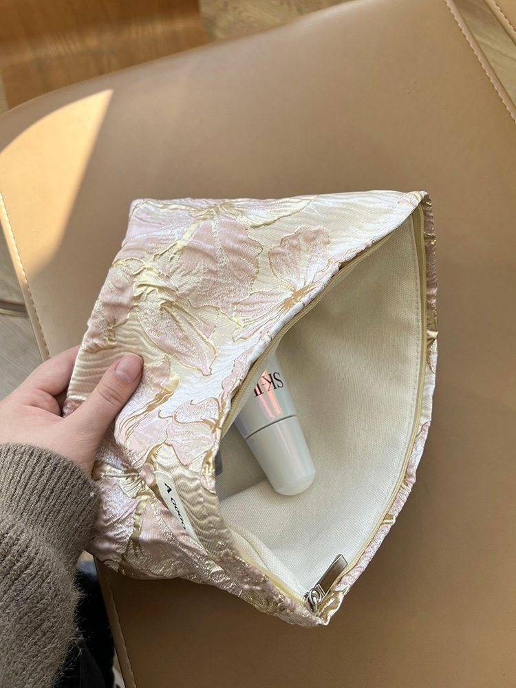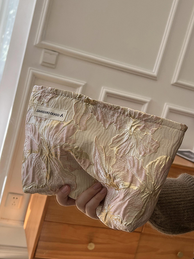 골드 실크 플라워 양각 자카드 화장품 가방 주름 질감 대용량 휴대용 이너 백 스킨 케어 보관 가방