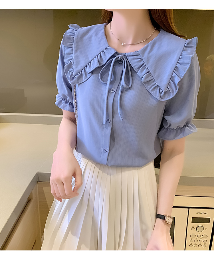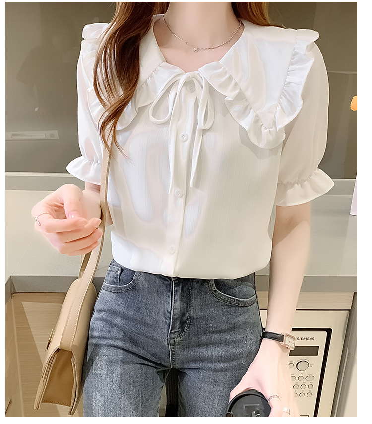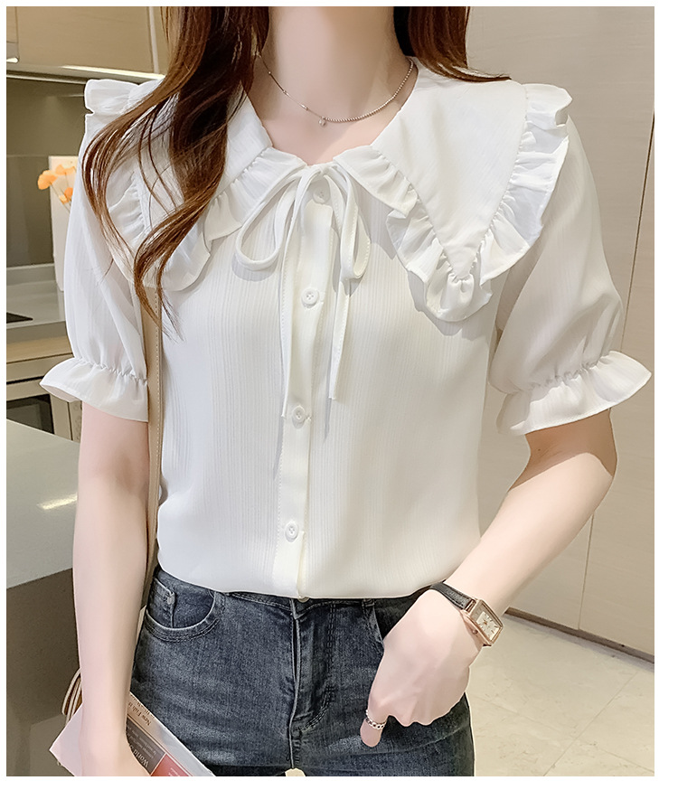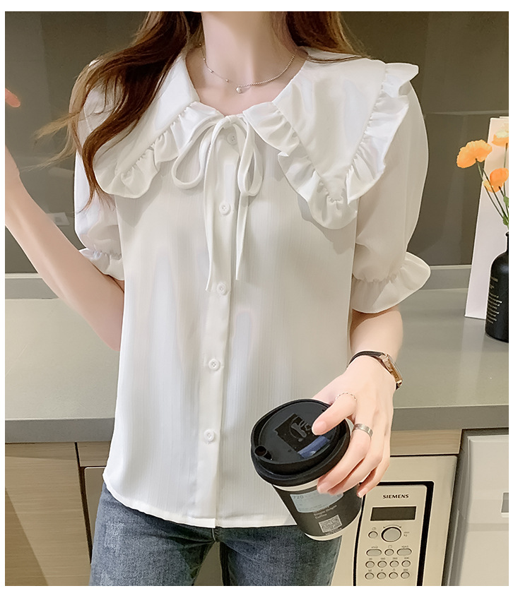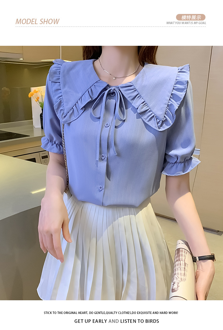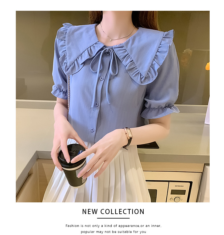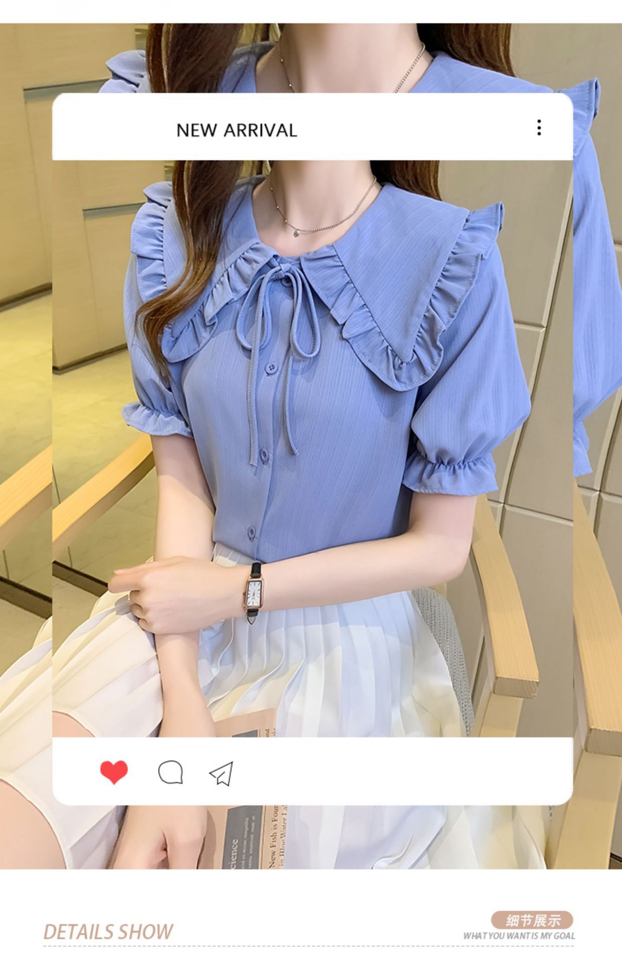 인형 칼라 셔츠 여성 긴 소매 봄, 가을 2024 새로운 달콤한 연령 감소 탑 레드 프릴 쉬폰 셔츠스토어 가기