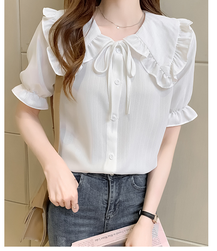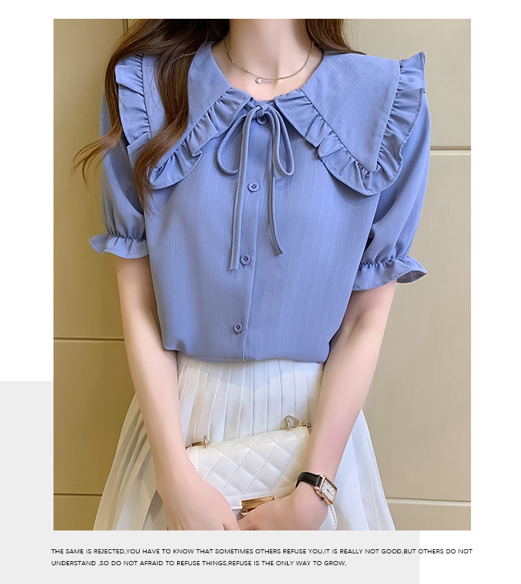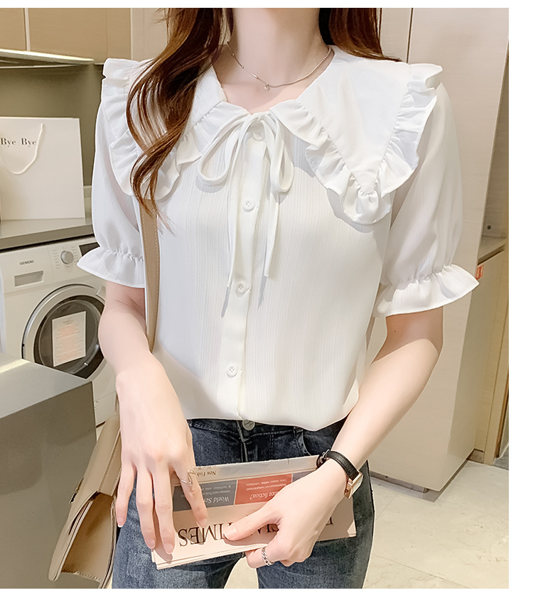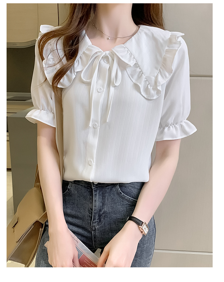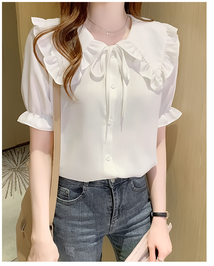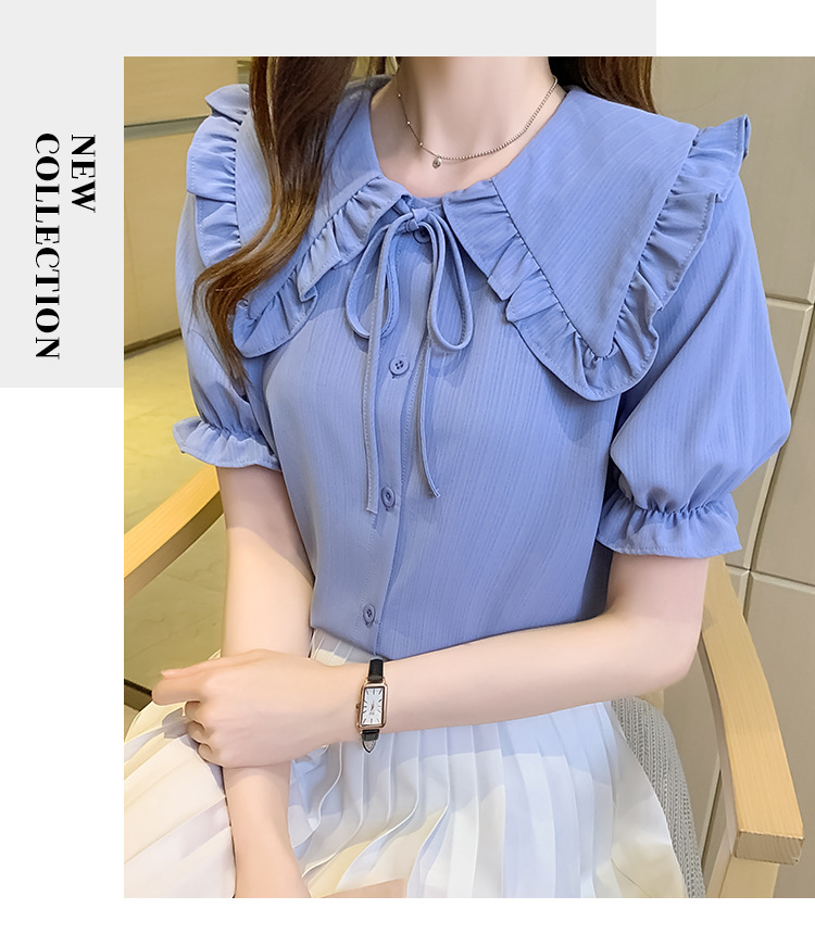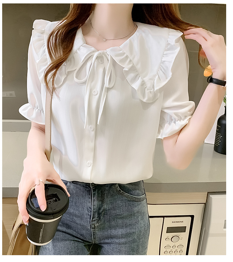 인형 칼라 셔츠 여성 긴 소매 봄, 가을 2024 새로운 달콤한 연령 감소 탑 레드 프릴 쉬폰 셔츠스토어 가기