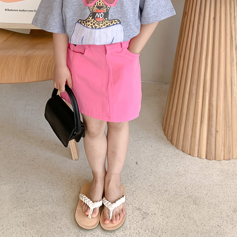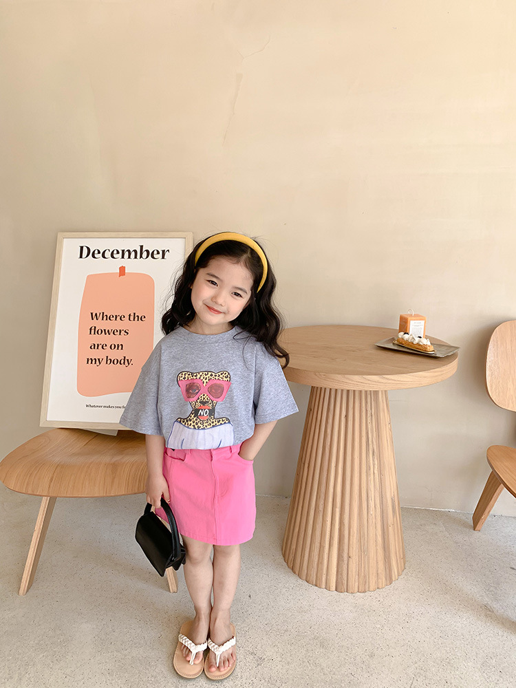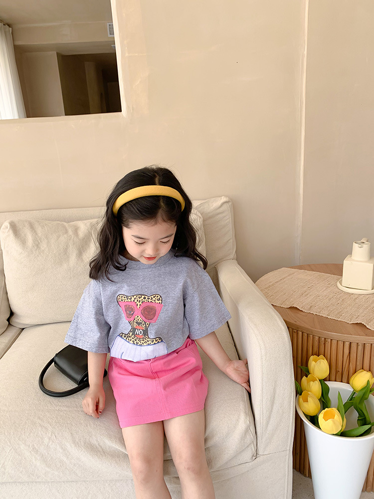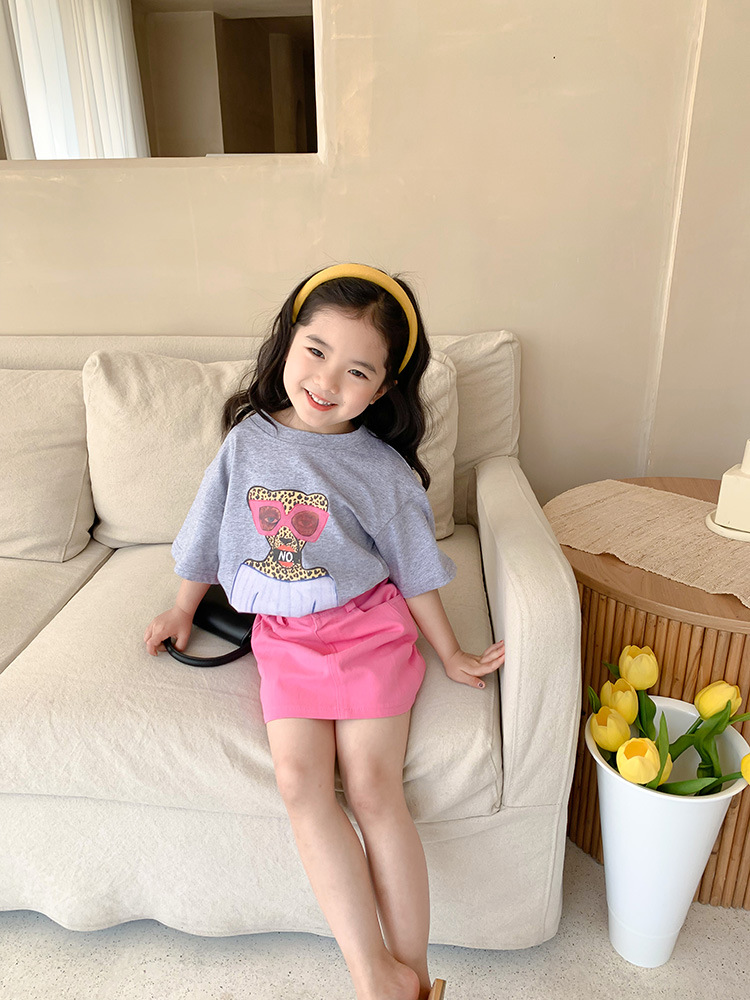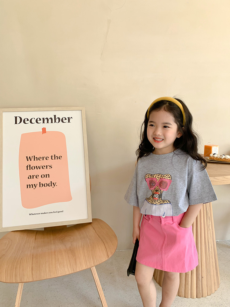 여아 세트 2022 여름 새로운 한국식 만능 만화 프린트 면 티셔츠 단색 스커트 투피스 세트