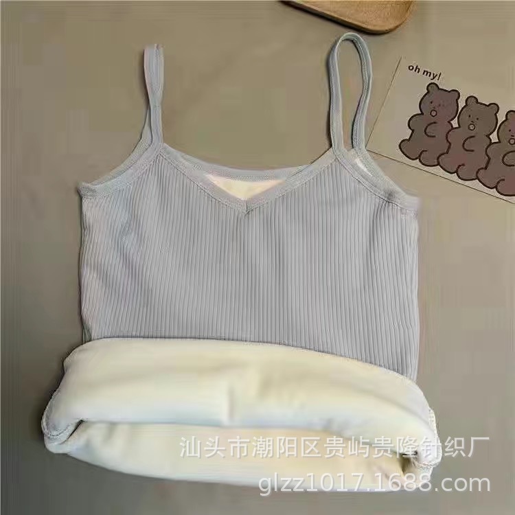 가을과 겨울 열 속옷 캐미솔 여성용 기모 탑 두꺼운 슬림 핏 내부 내열 V넥 베이스 셔츠