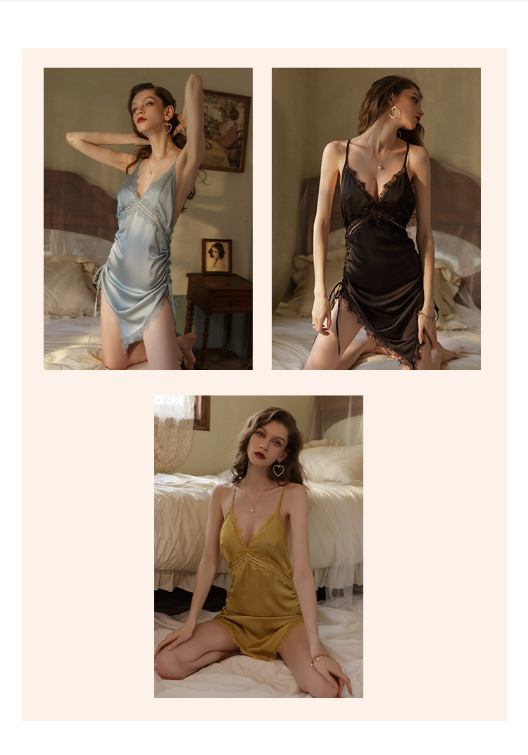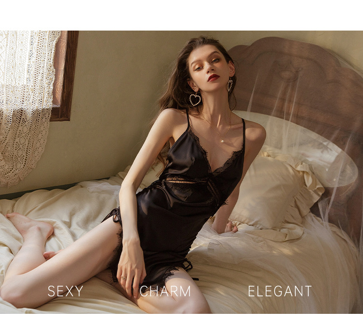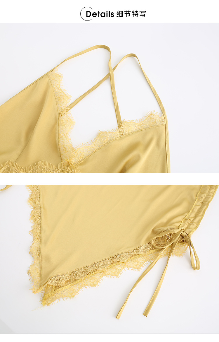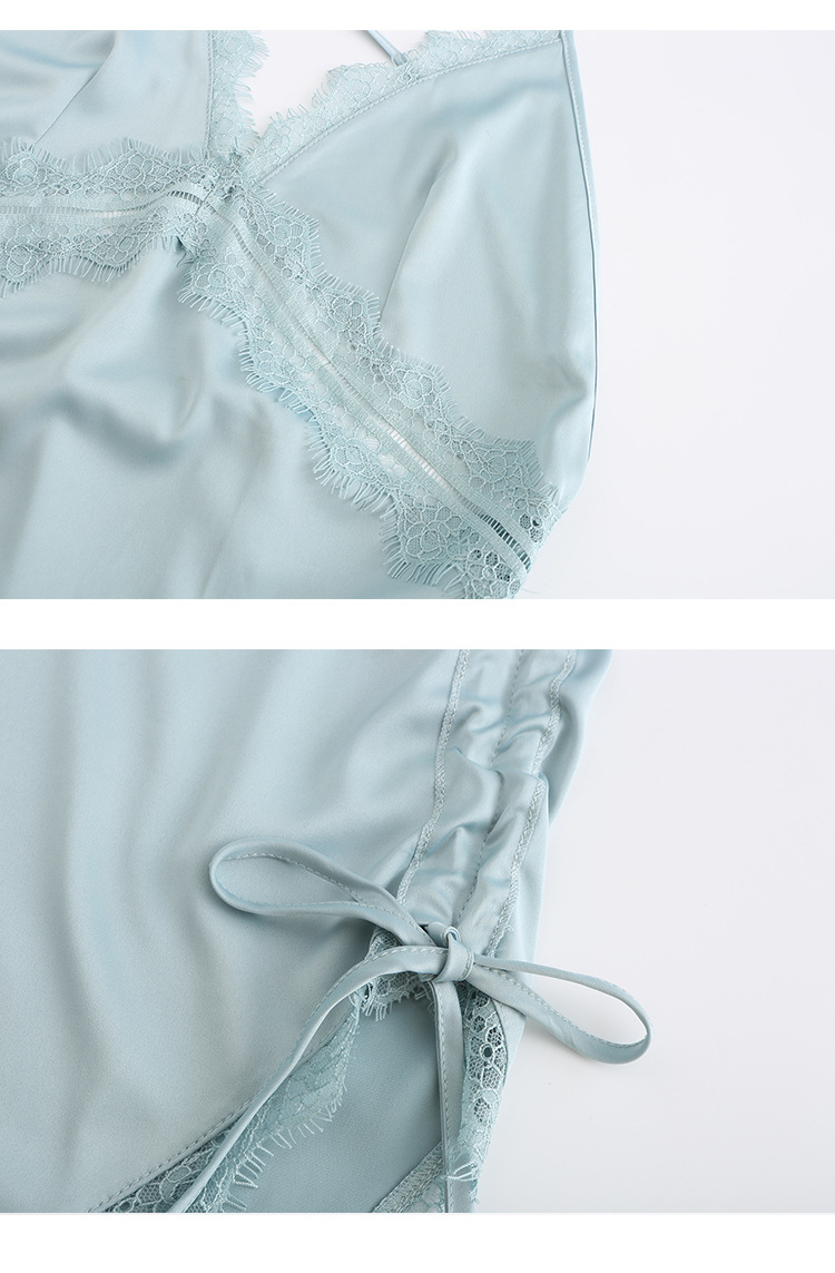 섹시한 아이스 실크 잠옷 여자의 새로운 얇은 여름 분할 슬링 졸라매는 끈 순도 홈 잠옷 6103