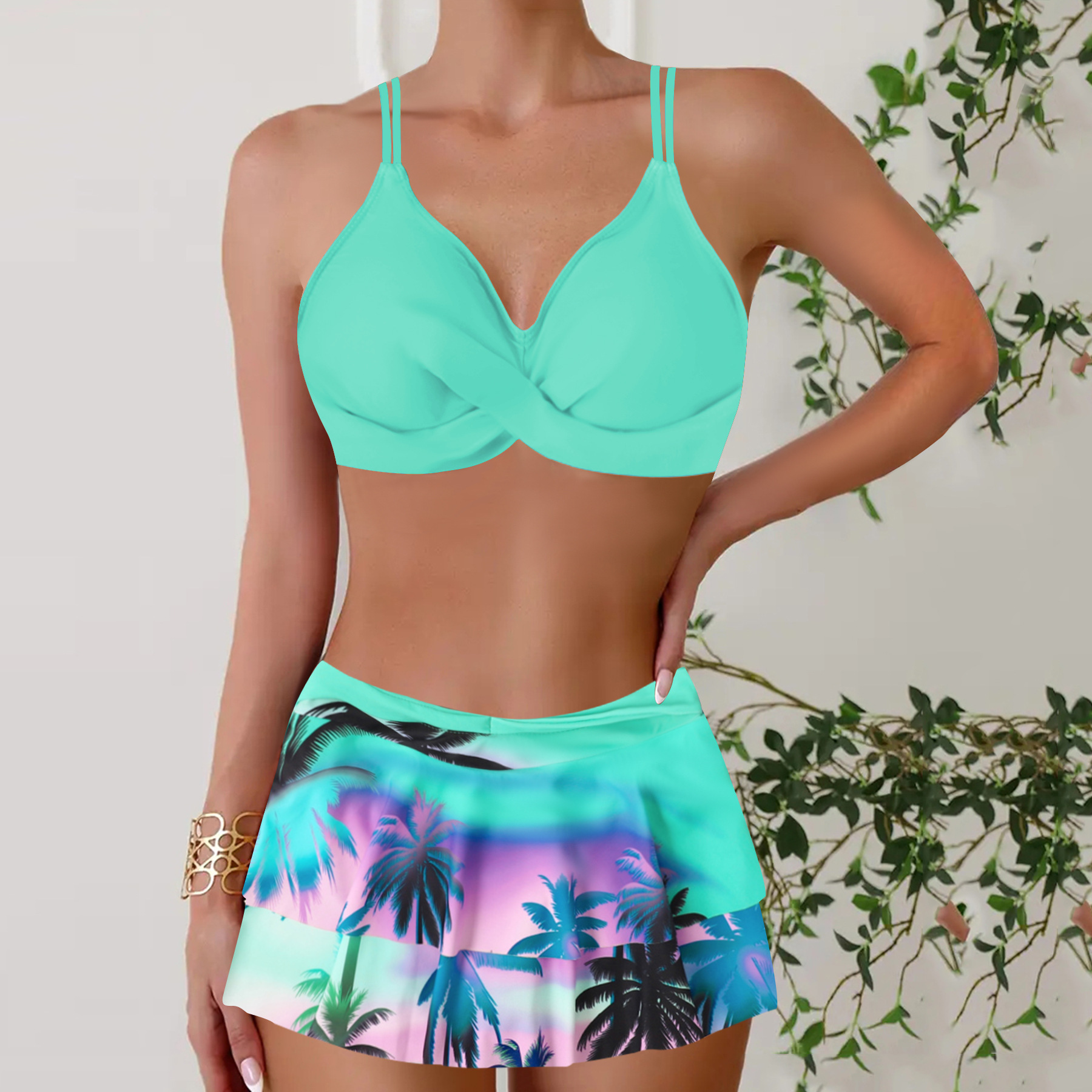 2022 새로운 크로스 보더 유럽과 미국 섹시 스플릿 하이 웨이스트 프릴 프린트 비키니 수영복 여성 비키니스토어 가기