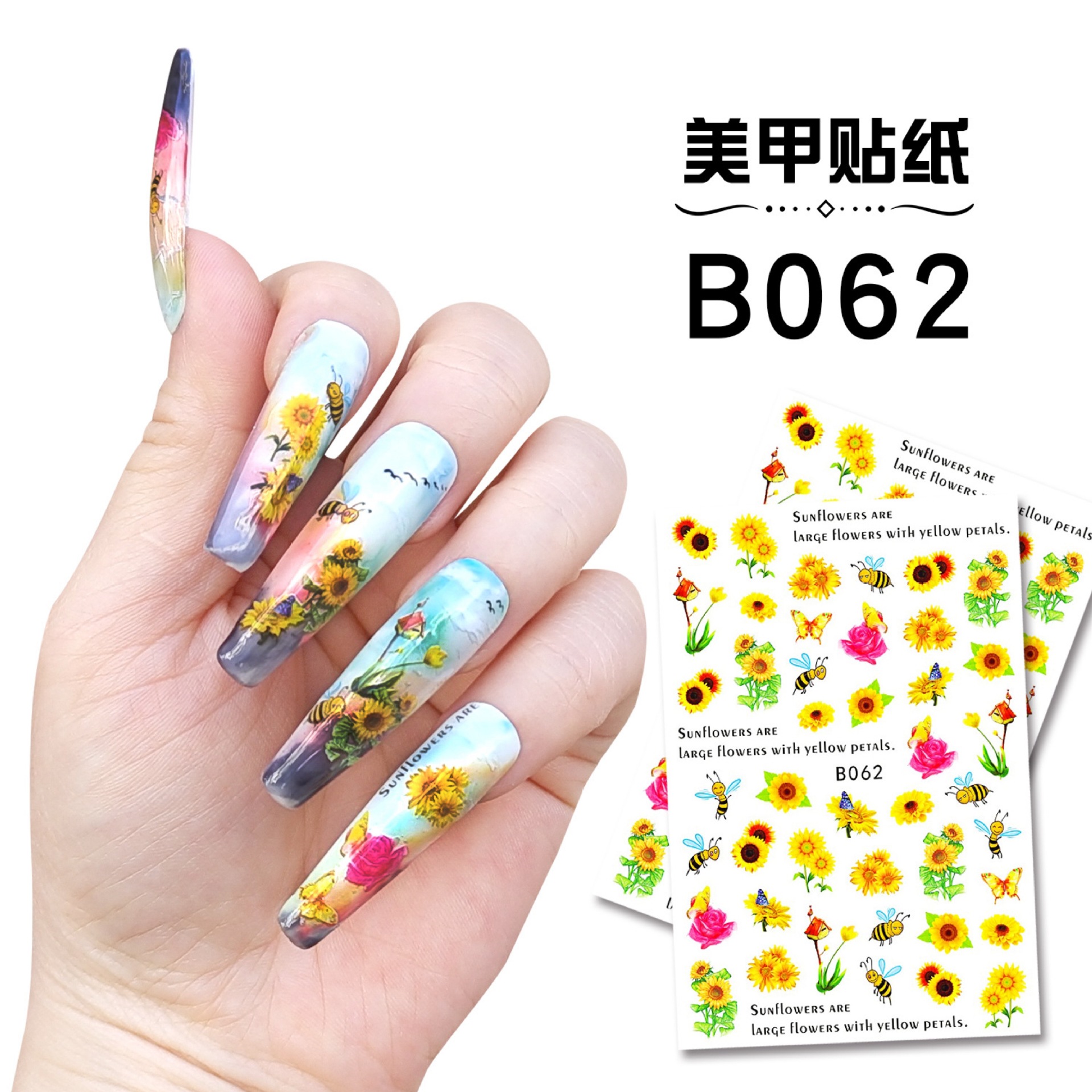 NAIL 2022 새로운 B54-65 봄과 여름 해바라기 시리즈 네일 아트 접착제 네일 아플리케 카드 독립 팩스토어 가기